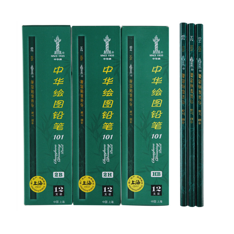 中华牌101绘图铅笔 小学生写字用儿童素描铅笔2H HB 2B 6B六角绿杆铅笔幼儿园初学者美术专用套盒装文具正品