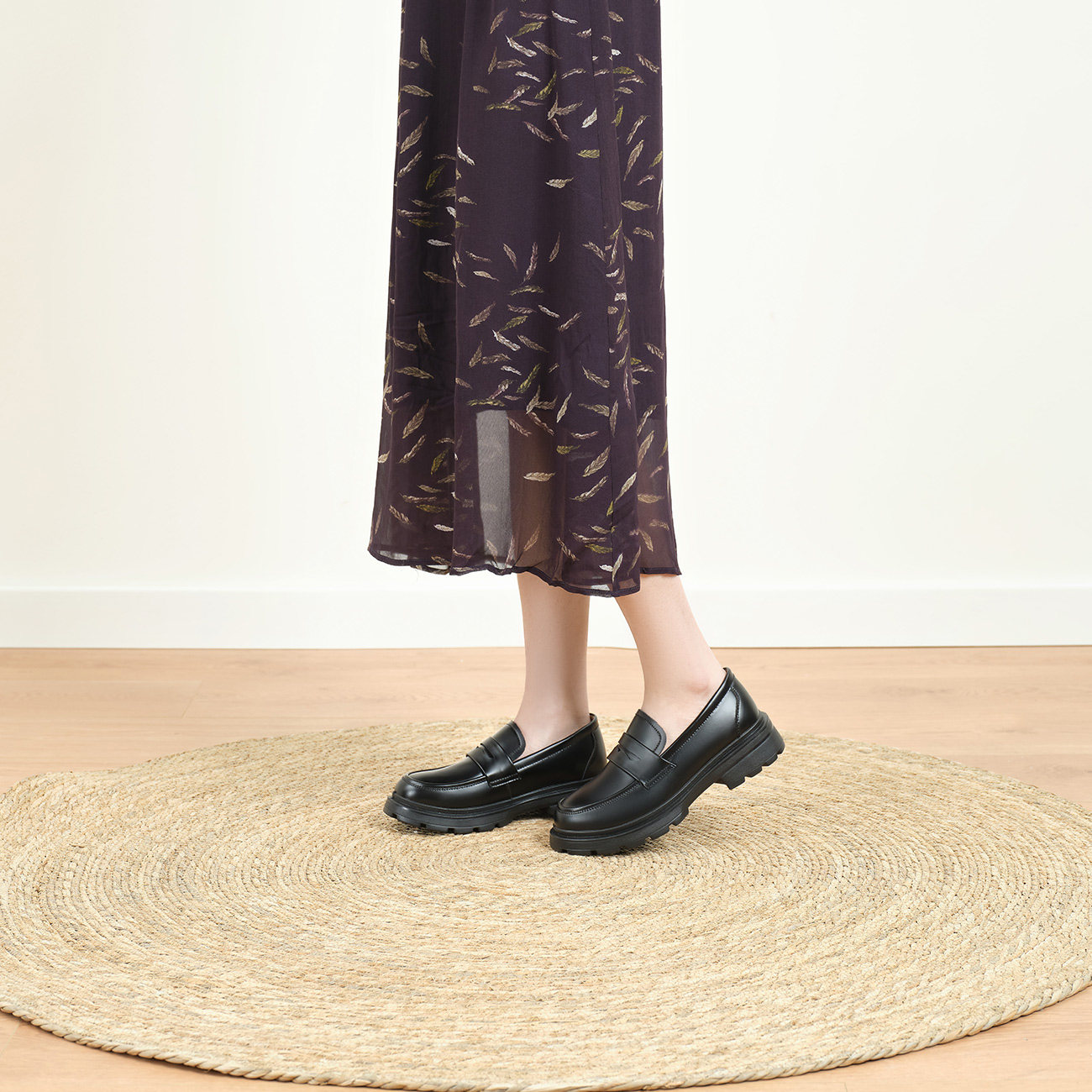 真皮厚底乐福鞋女2025春秋新款季松糕黑色百搭单鞋jk英伦风小皮鞋