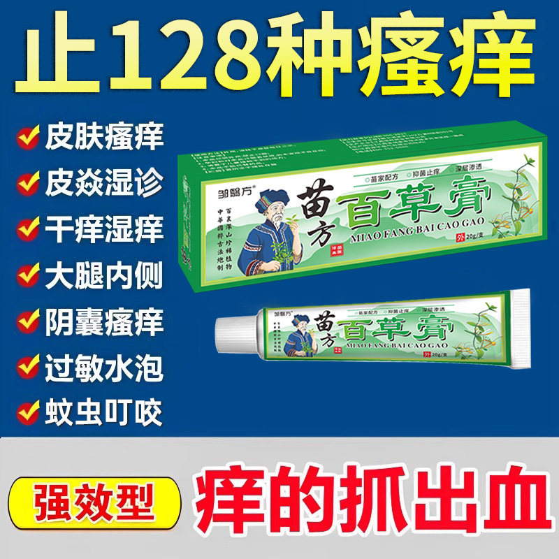 苗方百草膏正品抑菌止痒膏皮肤湿痒干燥瘙痒全身通用肛门大腿内侧