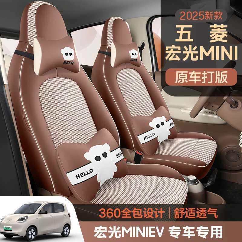 25新款专车专用五菱MINI四门版皮拼千鸟格汽车座垫四季通用座椅套