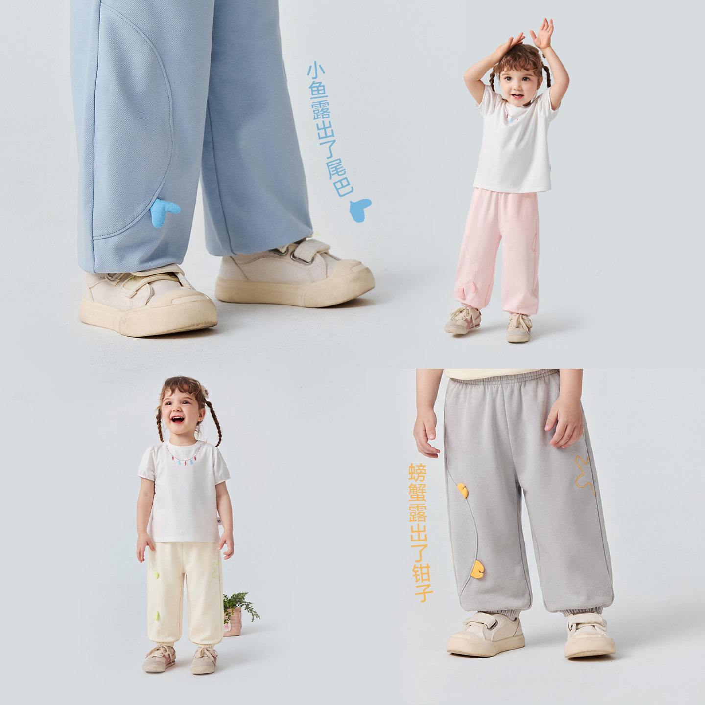 迷你巴拉男女童宝宝裤子2026春吸湿速干透气轻薄抗起球防蚊裤长裤
