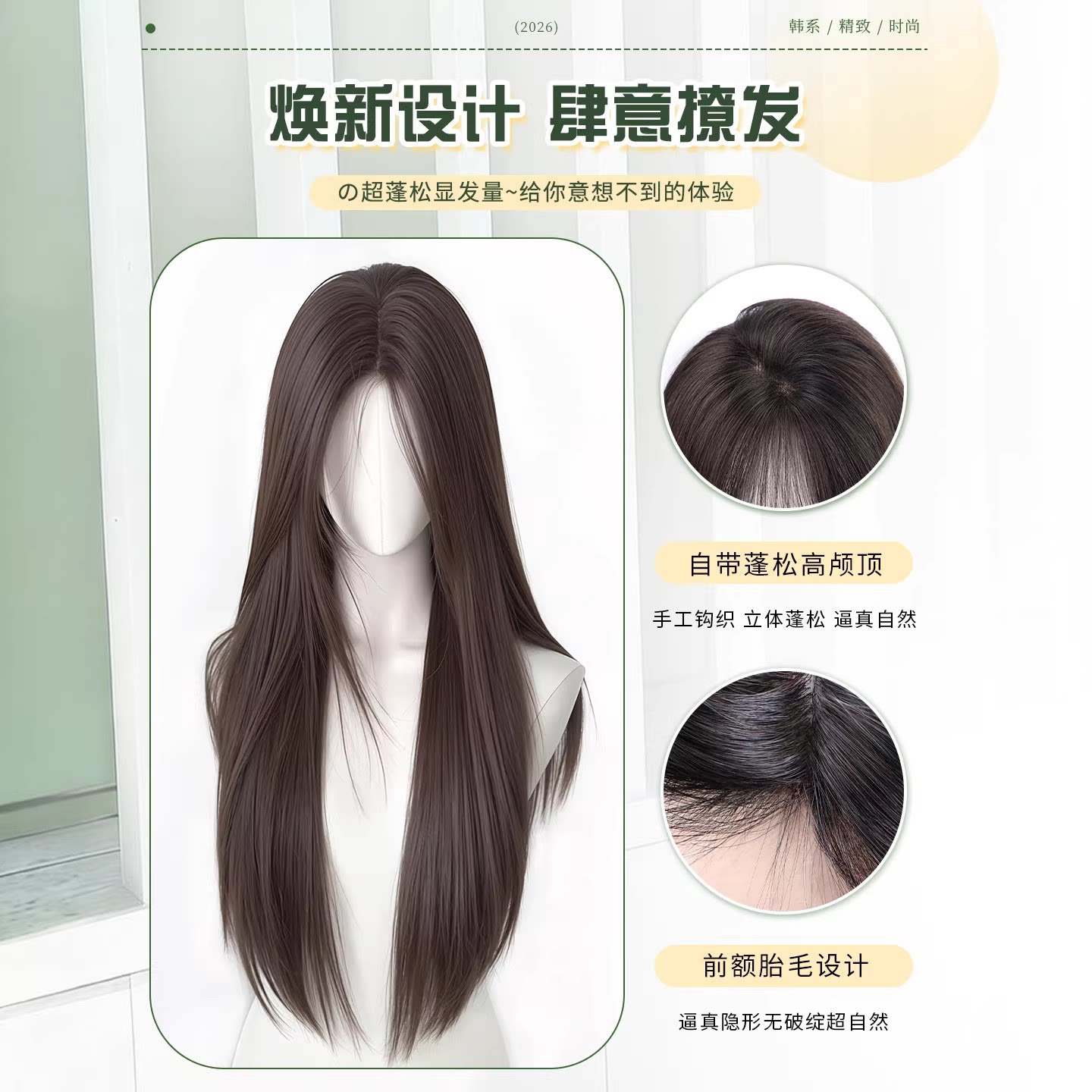 锁骨发不用戴发网假发女片头顶增发量蓬松高颅顶长直发假发片中分