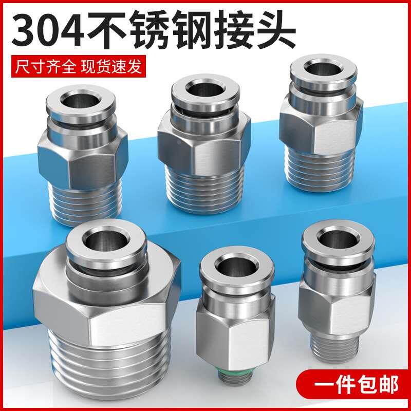 304不锈钢PC6/8/10-02气管快速接头快接头快插气动元件螺纹直通