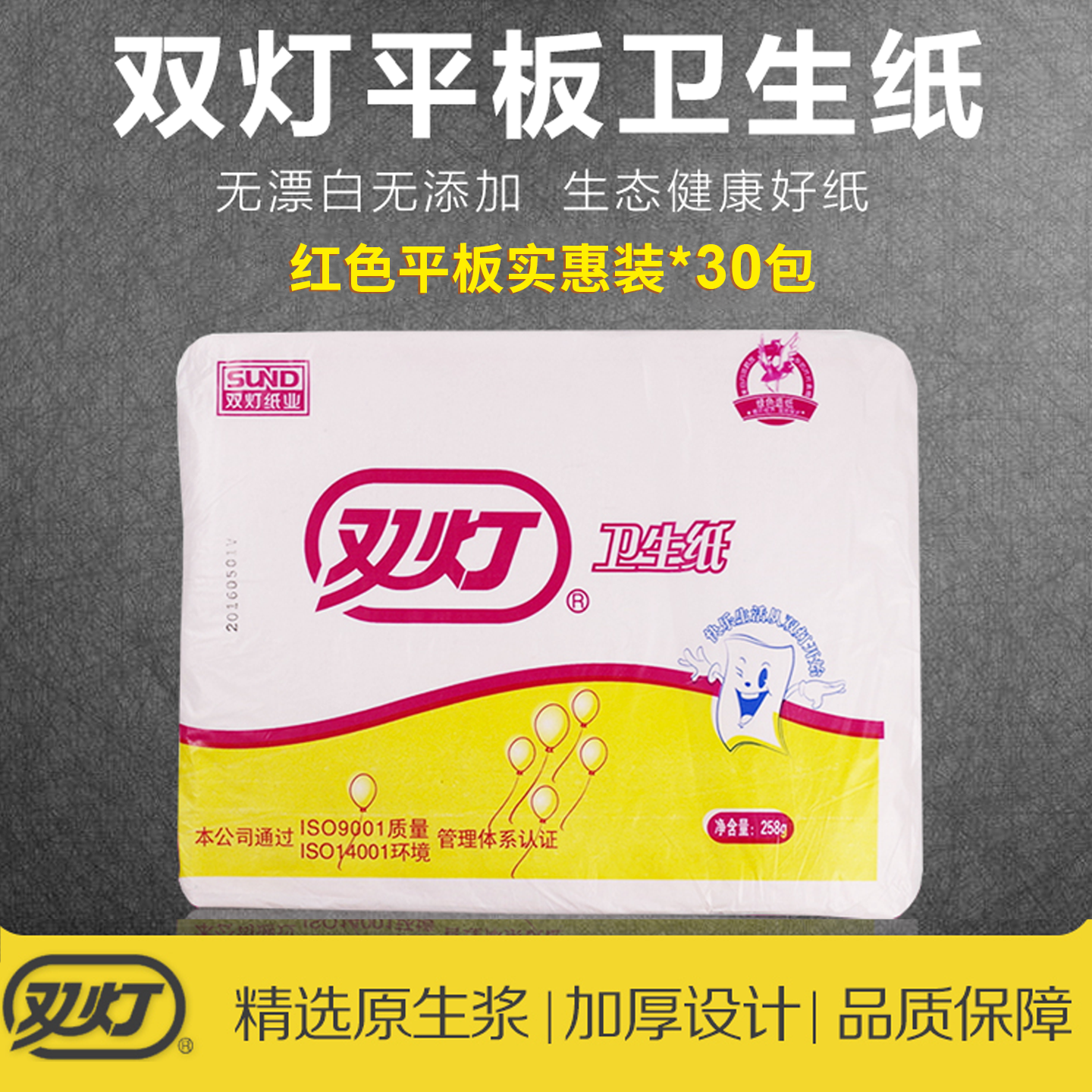双灯卫生纸厕纸实惠装红色平板30包草纸厕所纸刀纸258家用整箱批