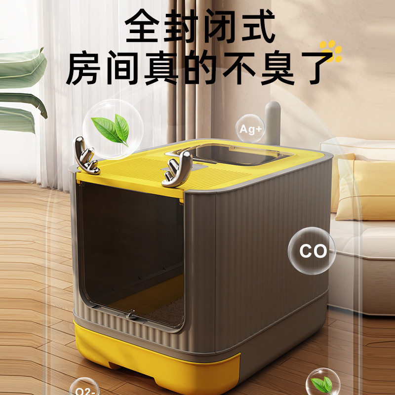 猫砂盆防外溅超大号抽屉式杀菌猫厕所家用智能封闭式折叠猫咪砂盆