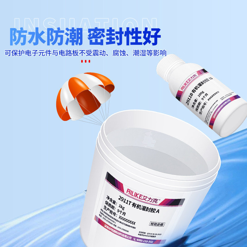 艾力克2911B灌封胶有机硅电子灌封ab胶元器件电路板锂电池变压器芯片绝缘防水密封胶耐高温导热胶透明软胶水