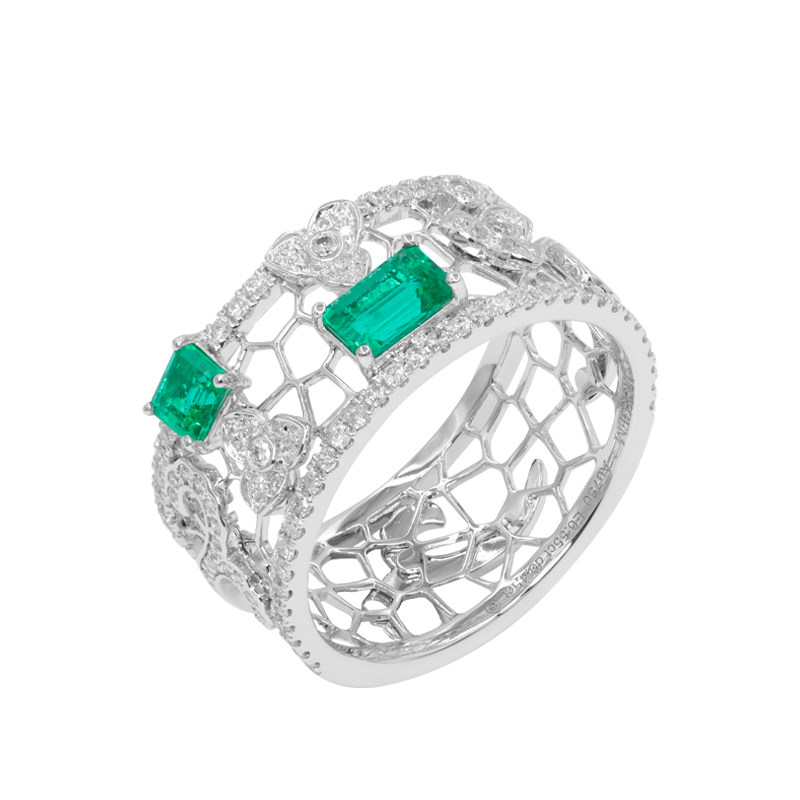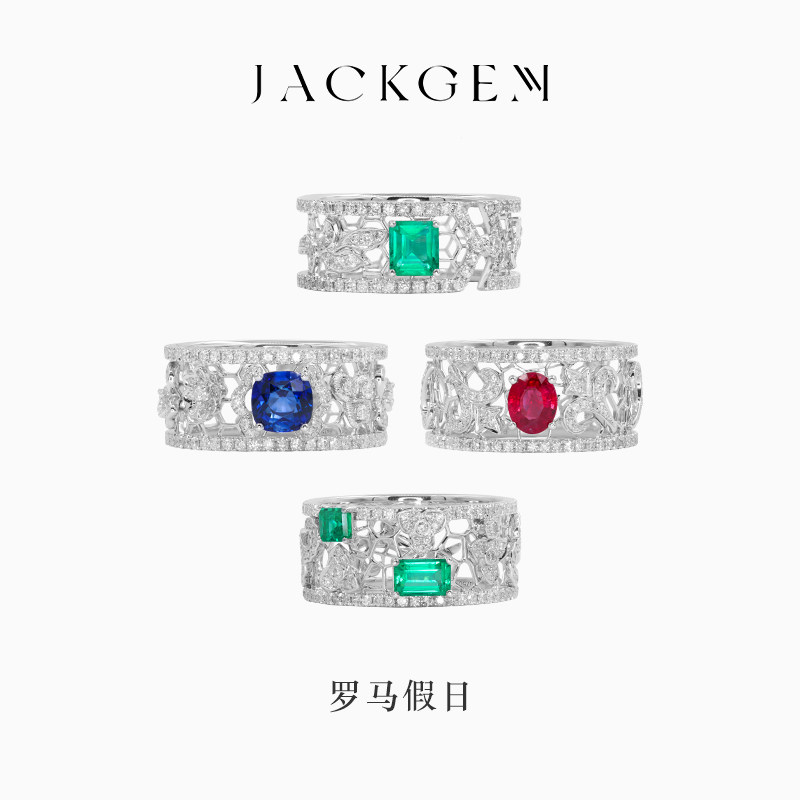 【罗马假日】祖母绿戒指蓝宝石戒指红宝石钻戒18k金蕾丝戒指女F8