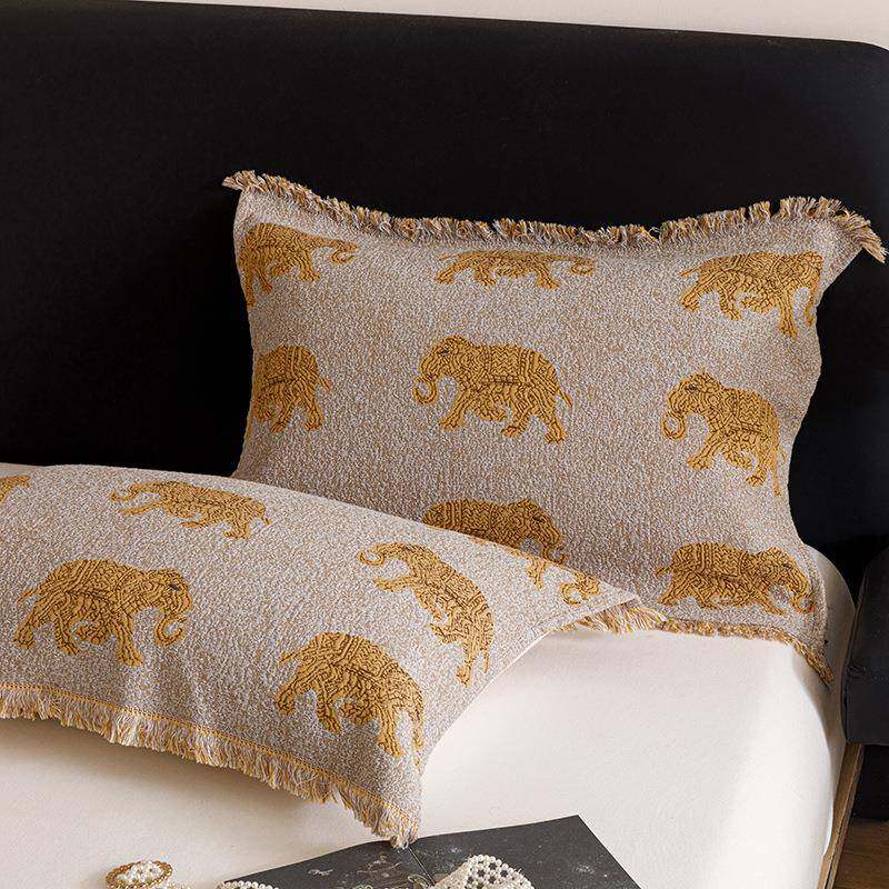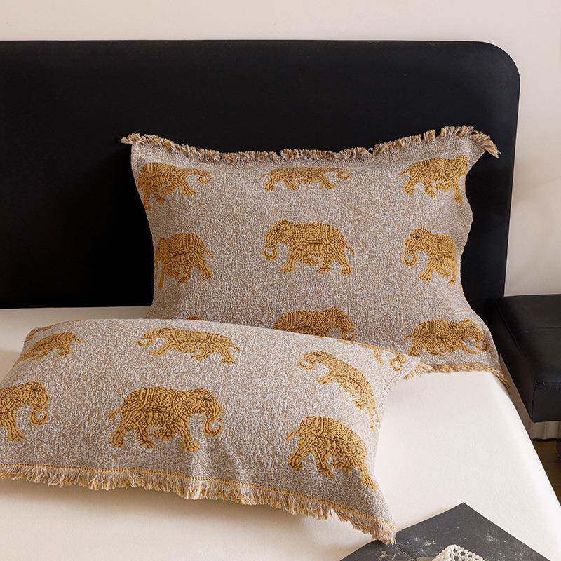 色织提花流苏枕巾 52*75cm/对 西域藏式名族风全棉多层纱布枕巾