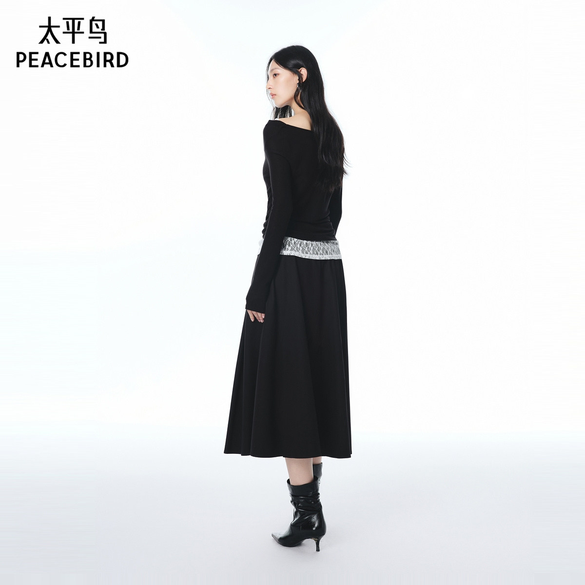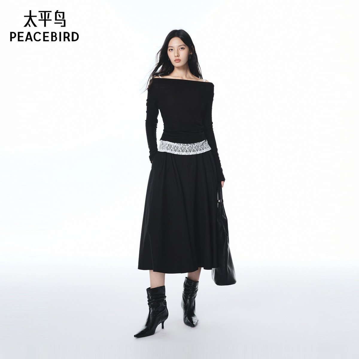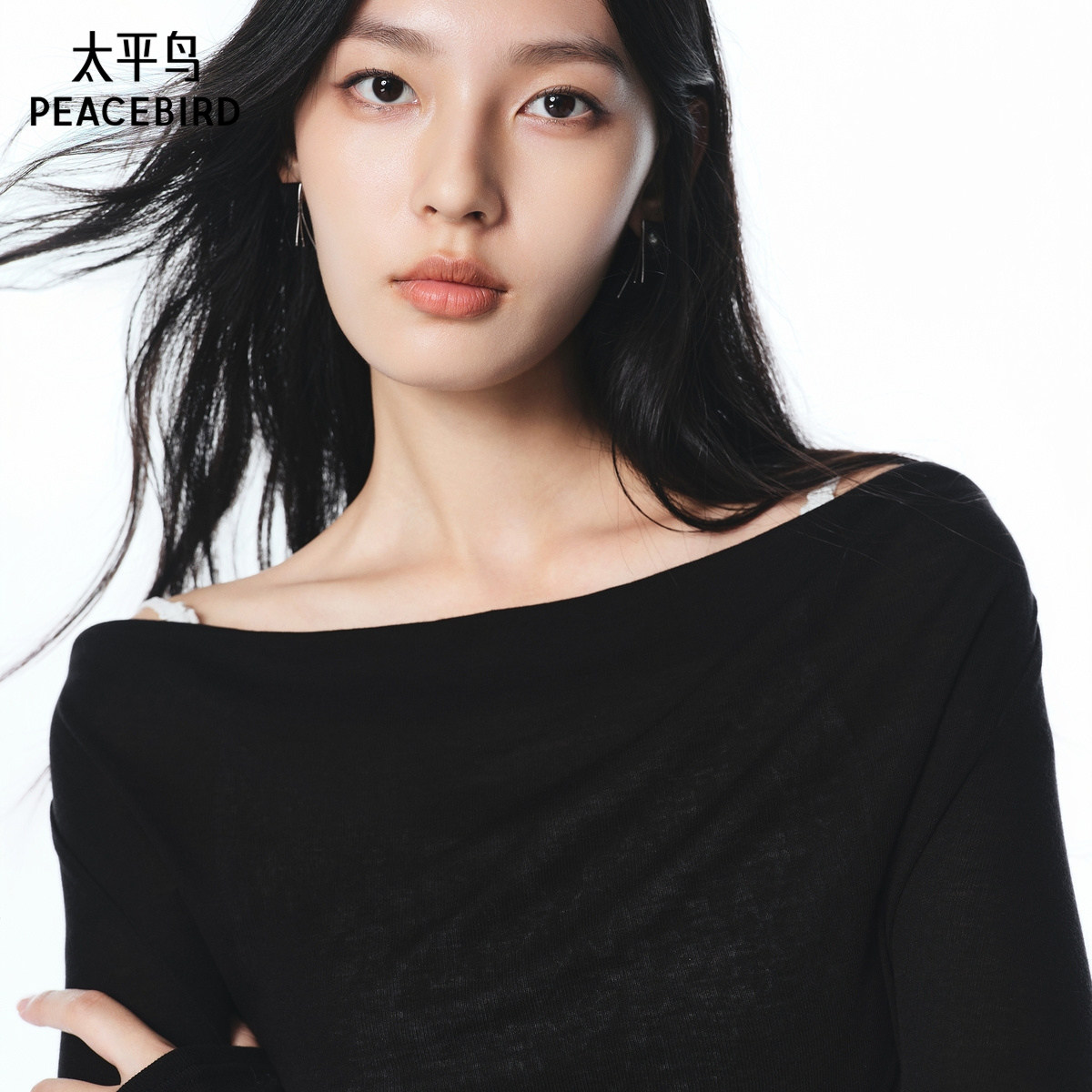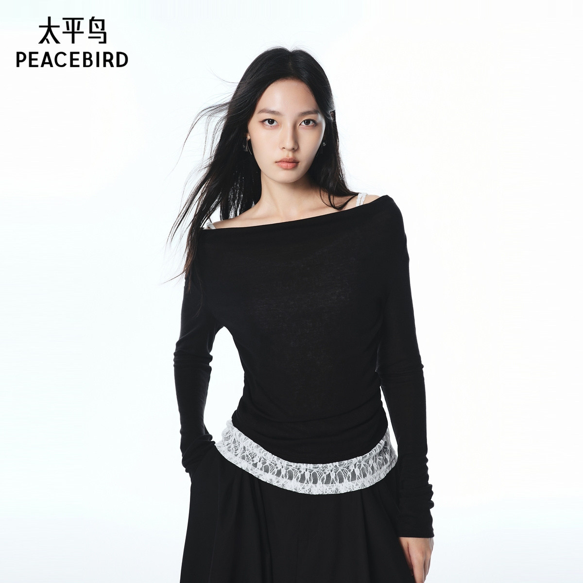 【商场同款】太平鸟25秋季新款优雅荡领蕾丝拼接长袖T恤A3CPF3274