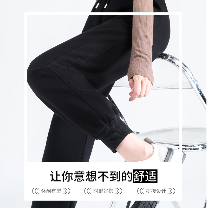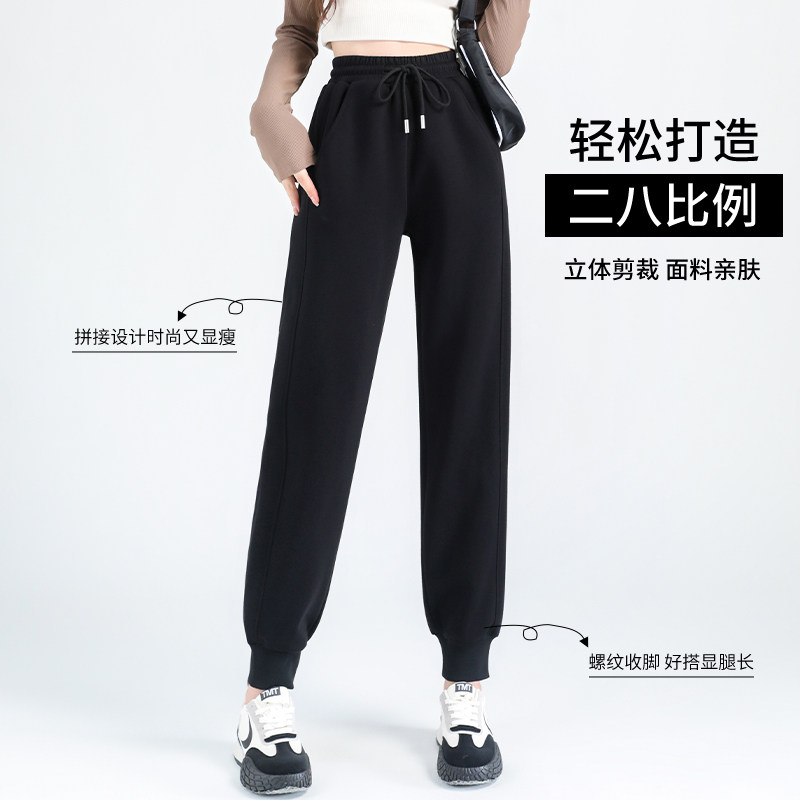 NOB真维斯运动裤女春秋款2025新款加绒束脚卫裤子黑色加厚休闲裤