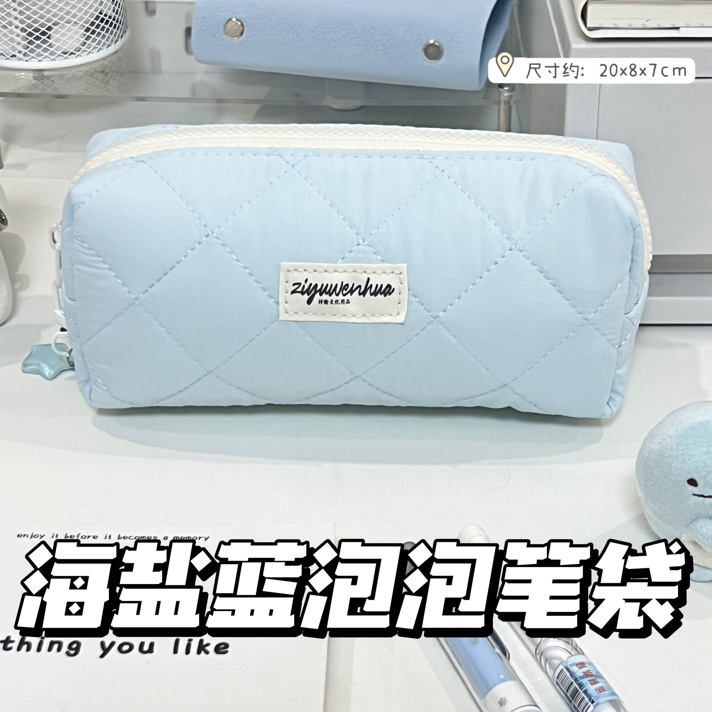 原创新款蓝色泡泡笔袋初中女生ins风盐系高颜值大容量铅笔文具袋