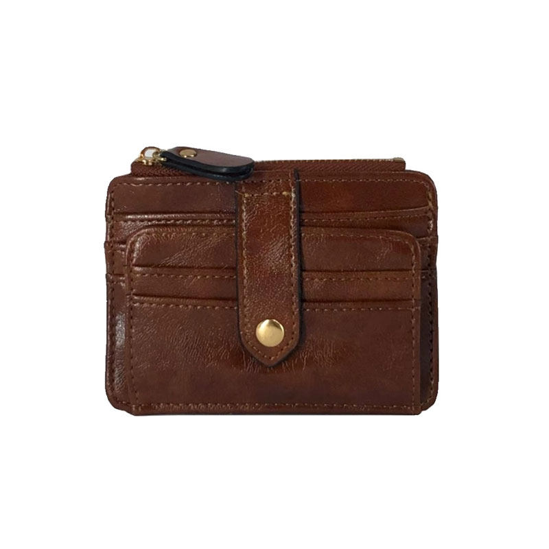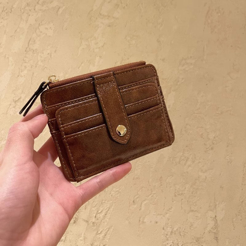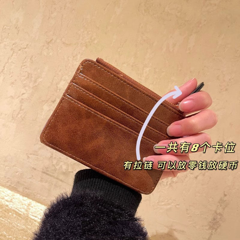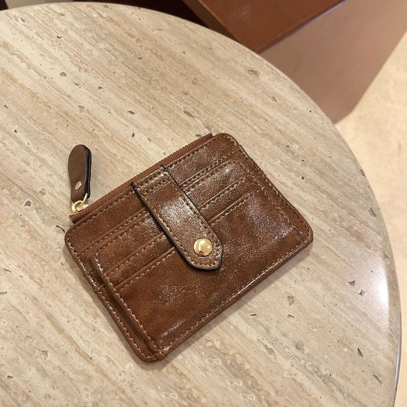 复古轻奢小卡包女油蜡皮质拉链多卡槽短款零钱包迷你百搭学生卡夹