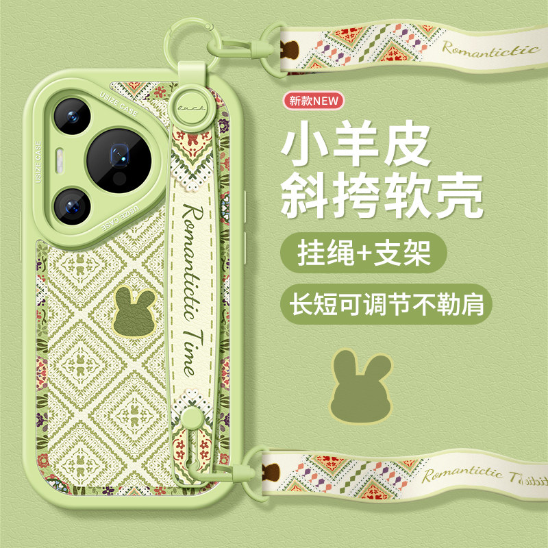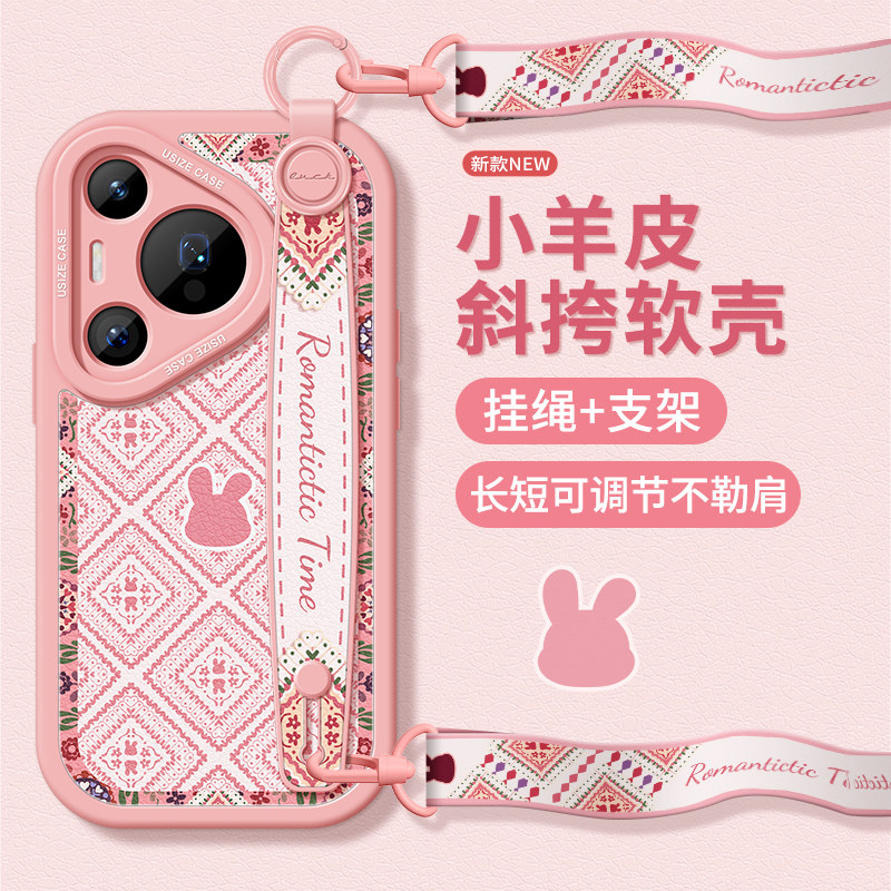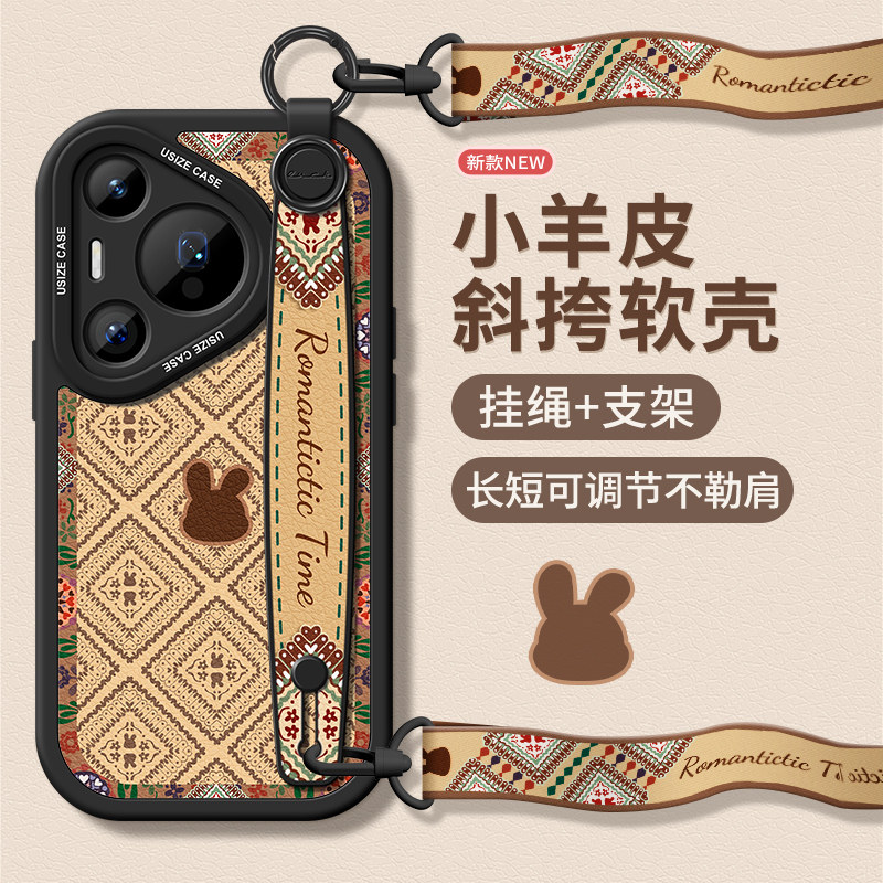 民族风小兔斜跨适用华为pura70pro手机壳女款p60保护套p50pro挂脖p40/p50e防摔硅胶70支架全包软壳p20pro新款