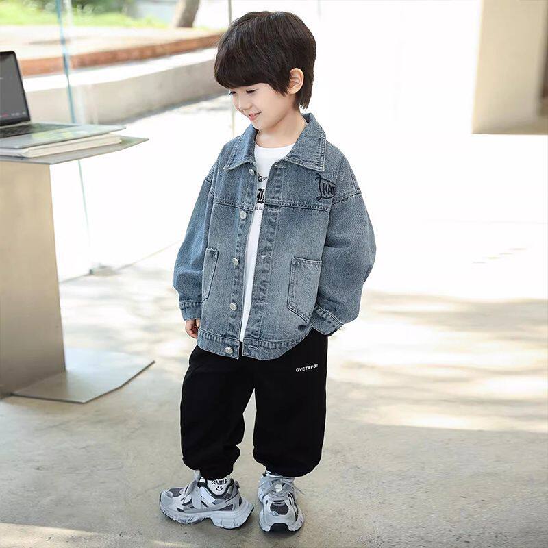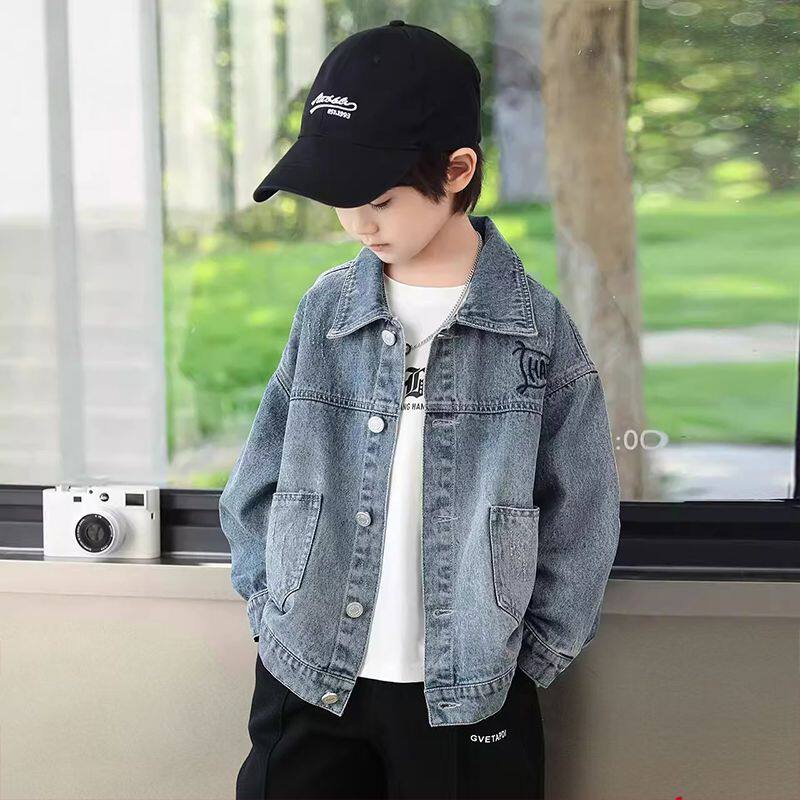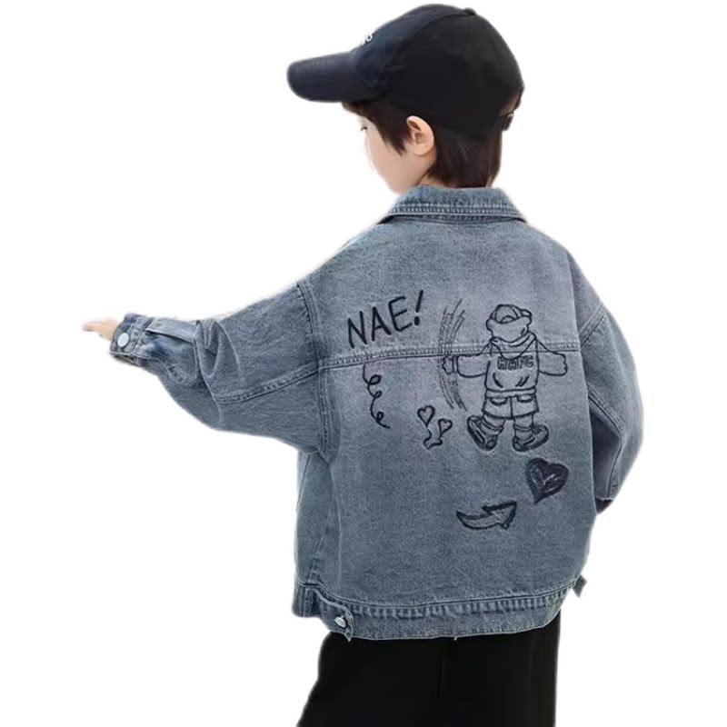 男童春秋季新款水洗牛仔衣中大童时尚潮酷刺绣上衣儿童装百搭外套