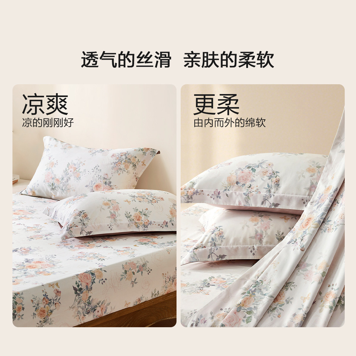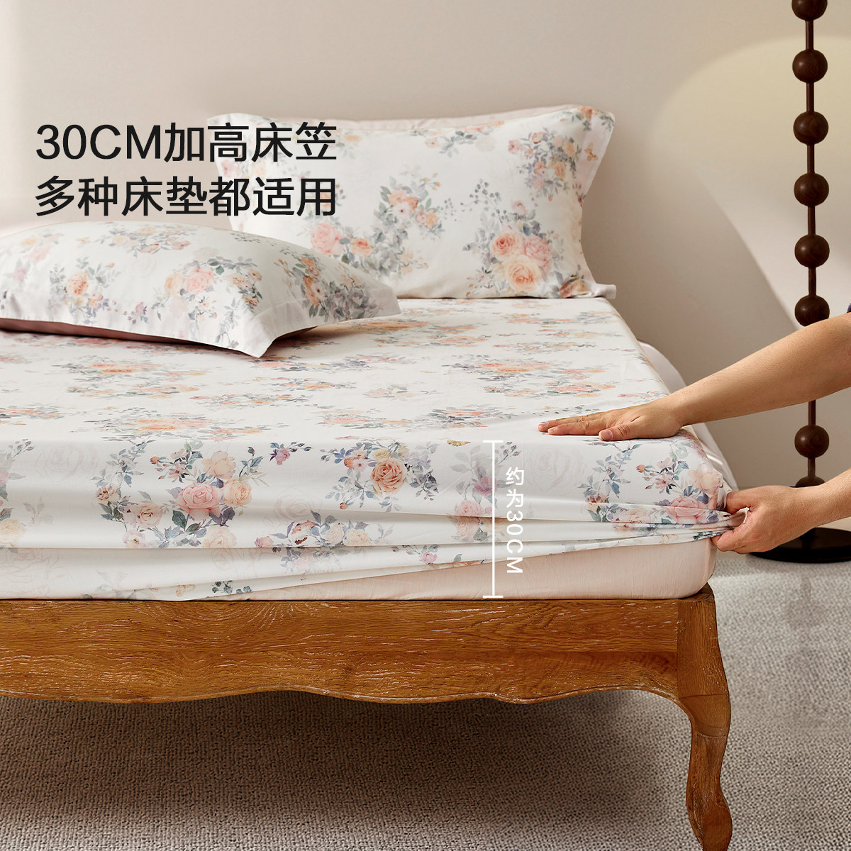 水星家纺裸睡A类天丝棉床笠莱赛尔棉凉感床垫保护罩夏季印花床品