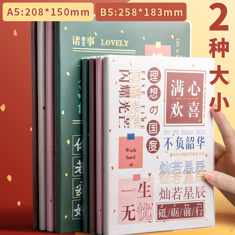 B5笔记本加厚胶套本个性励志文字A5横线初高中高颜值创意新款笔记本记事本大号横线记事本文艺精致软面