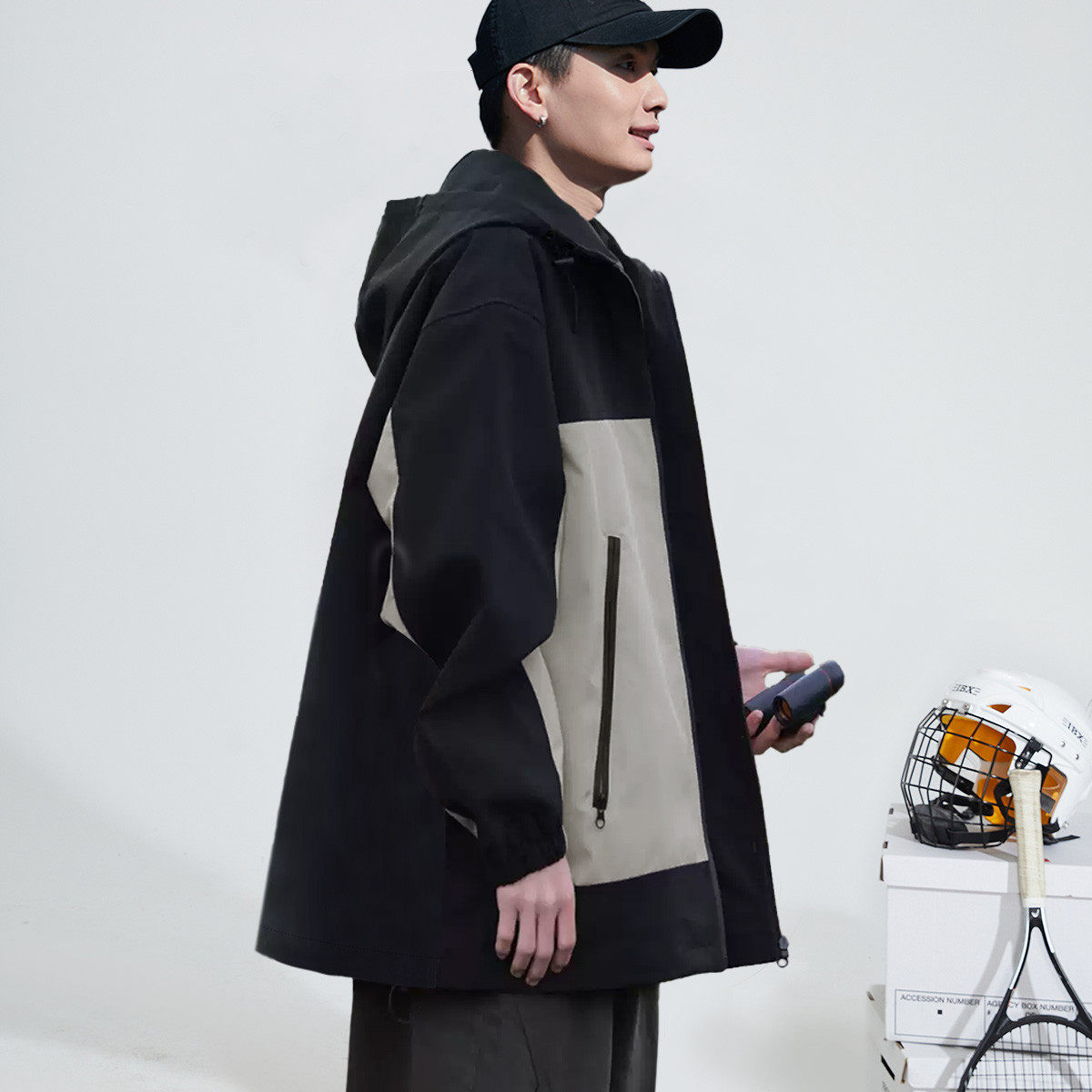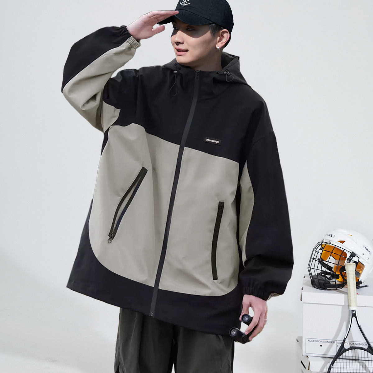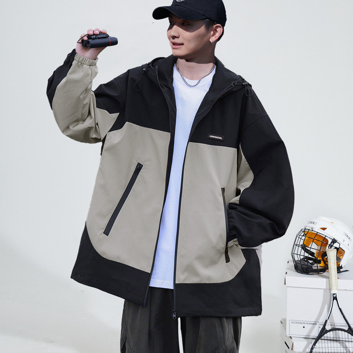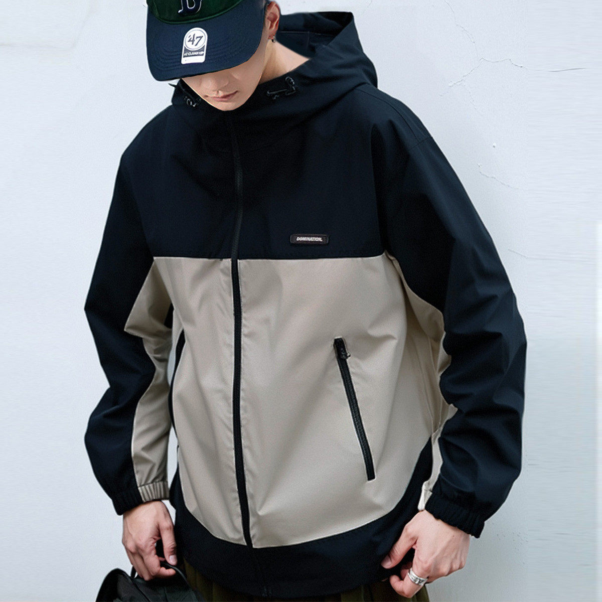 唐狮春秋季男士休闲外套户外工装夹克连帽撞色外套春装男外套TD