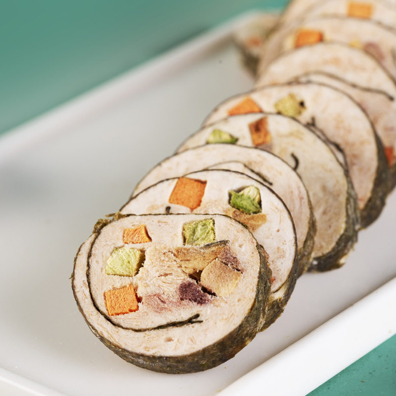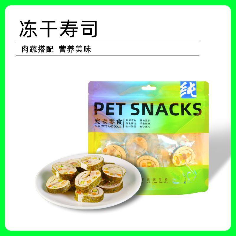 宠物零食冻干鸡肉三文鱼鸭肉果蔬寿司卷狗狗猫咪营养配餐训练奖励