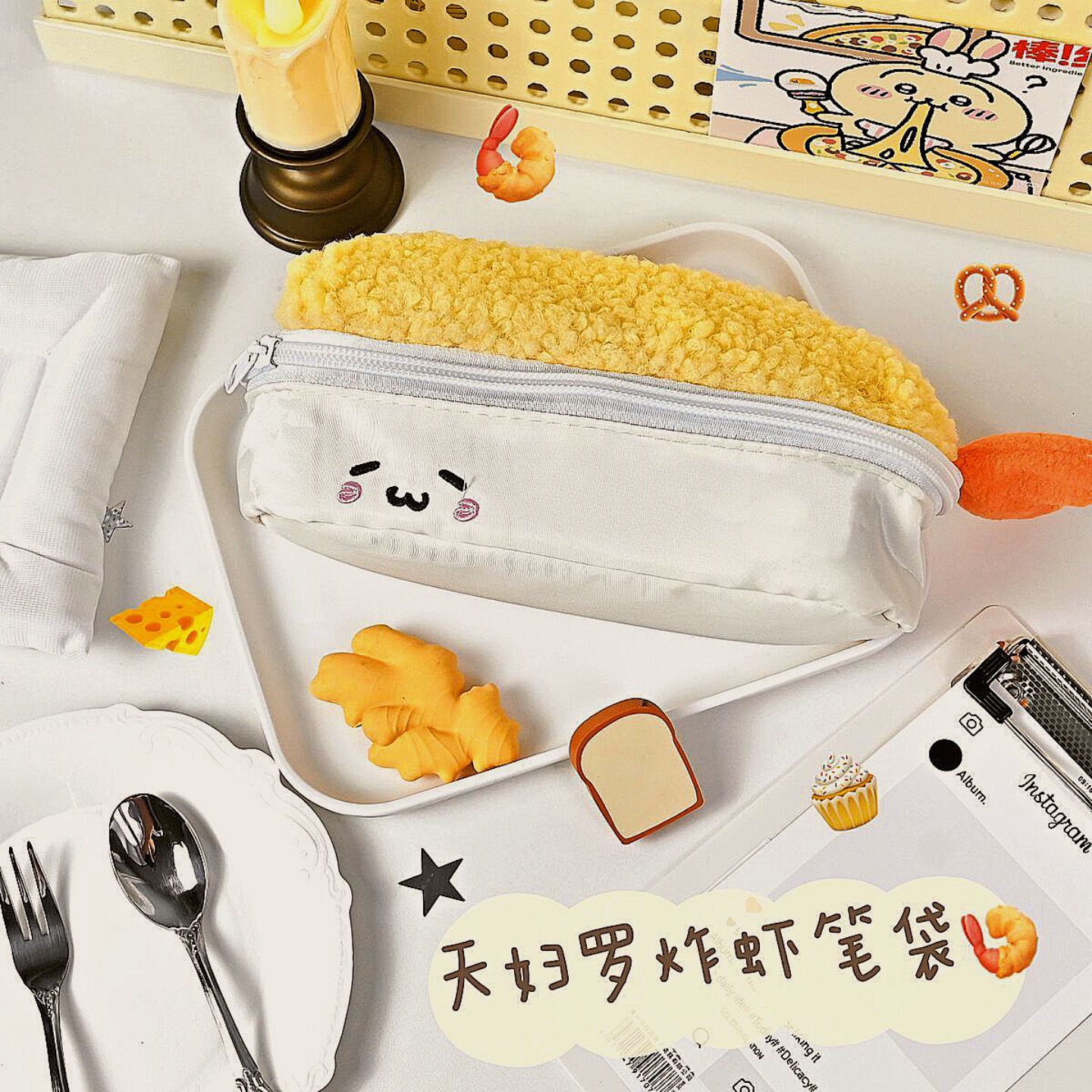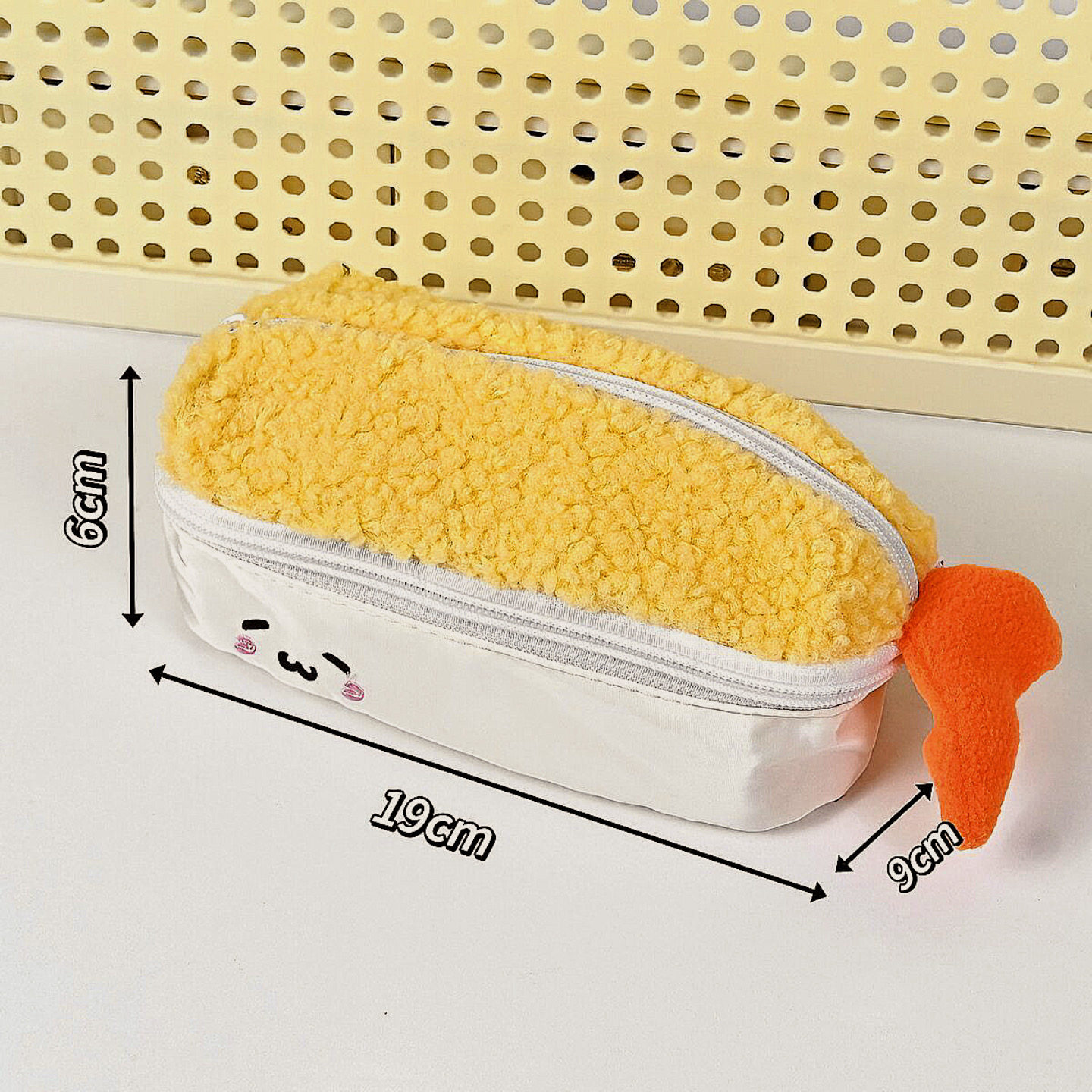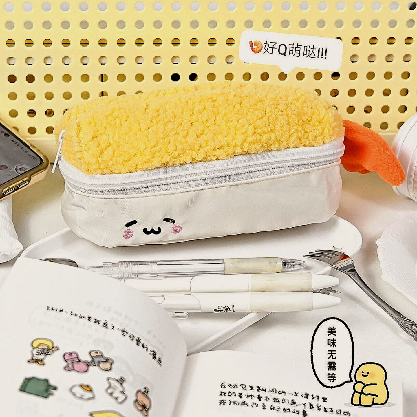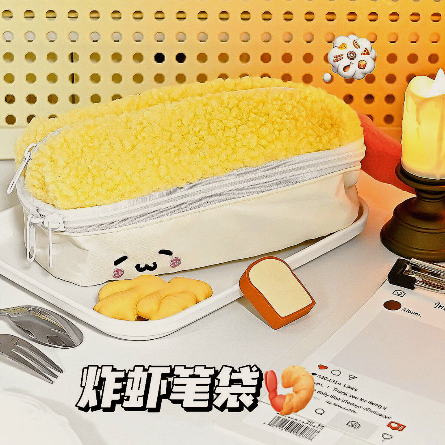 炸虾笔袋三文鱼可爱卡通文具新款高颜值毛绒大容量收纳袋收纳包女