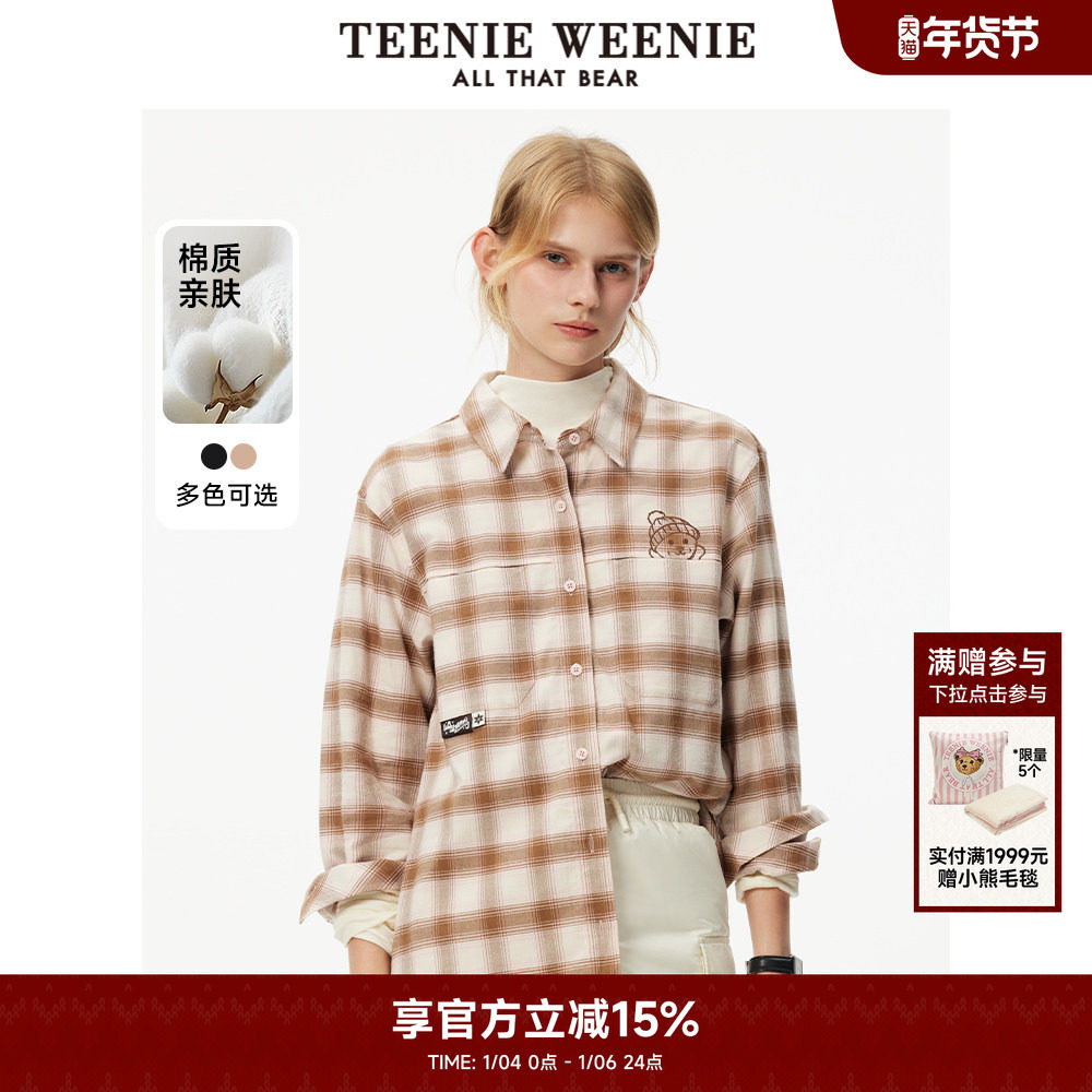 TeenieWeenie小熊奥莱女装衬衫冬季学院休闲潮流格纹长袖衬衣