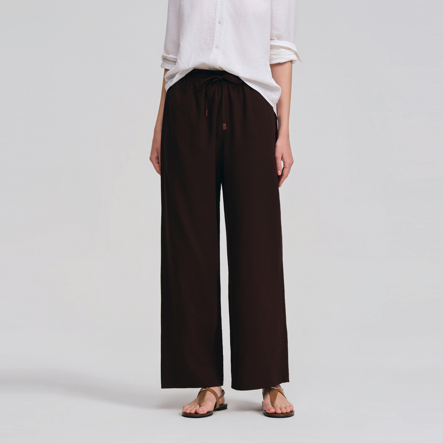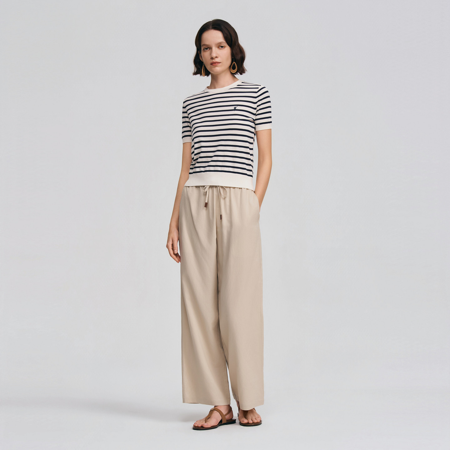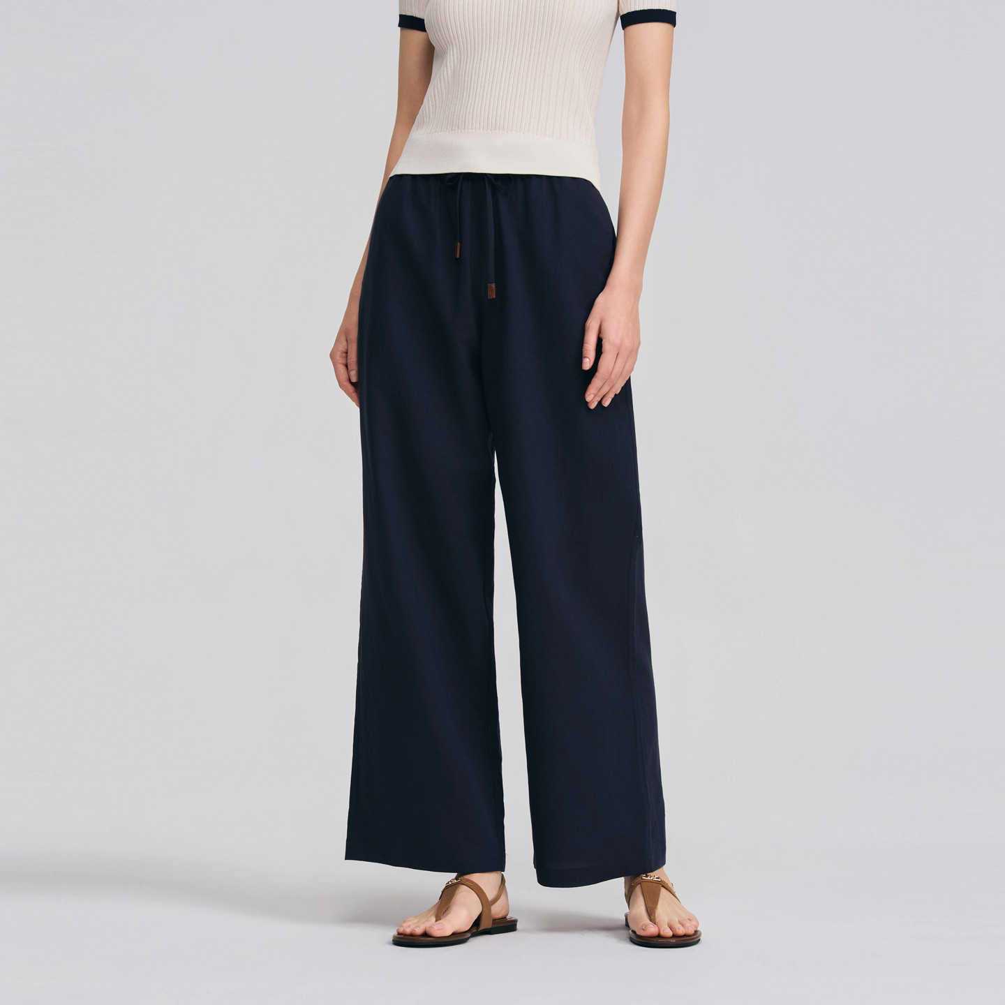 POLOWALK女士休闲裤2026春夏新款棉麻混纺松紧腰宽松直筒休闲长裤
