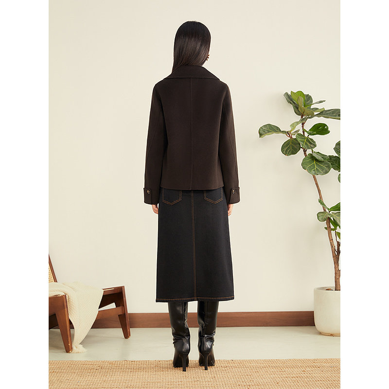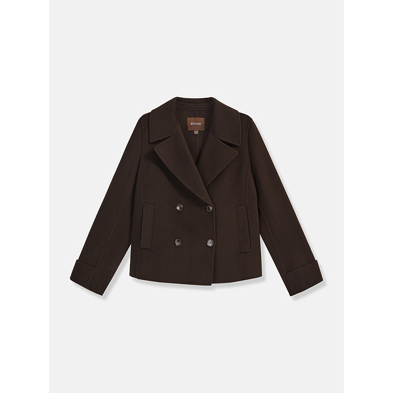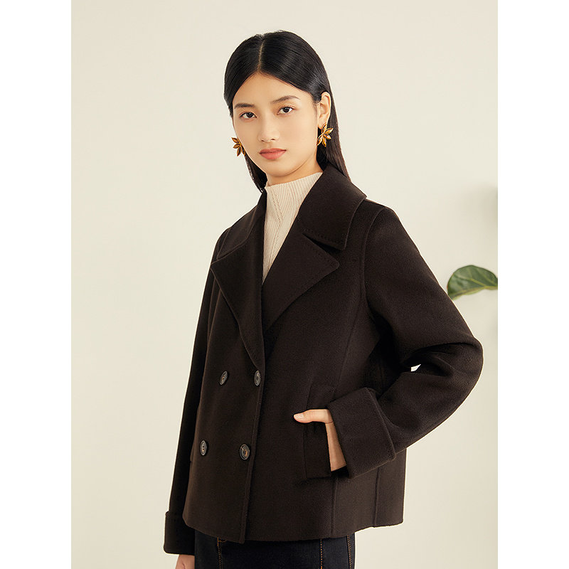 YINER音儿专选2025冬季新款短款翻领羊毛羊绒混纺双面呢大衣外套