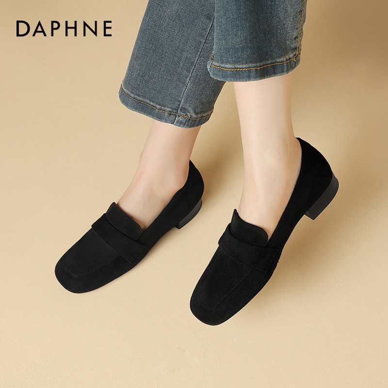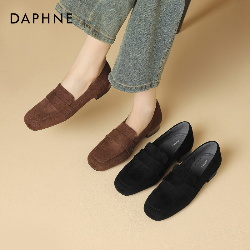 达芙妮老钱风棕色乐福鞋女2025新款英伦风小皮鞋女款平底加绒单鞋