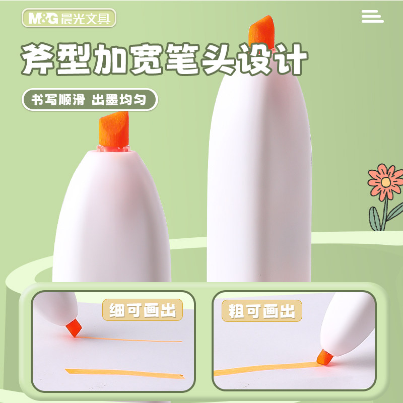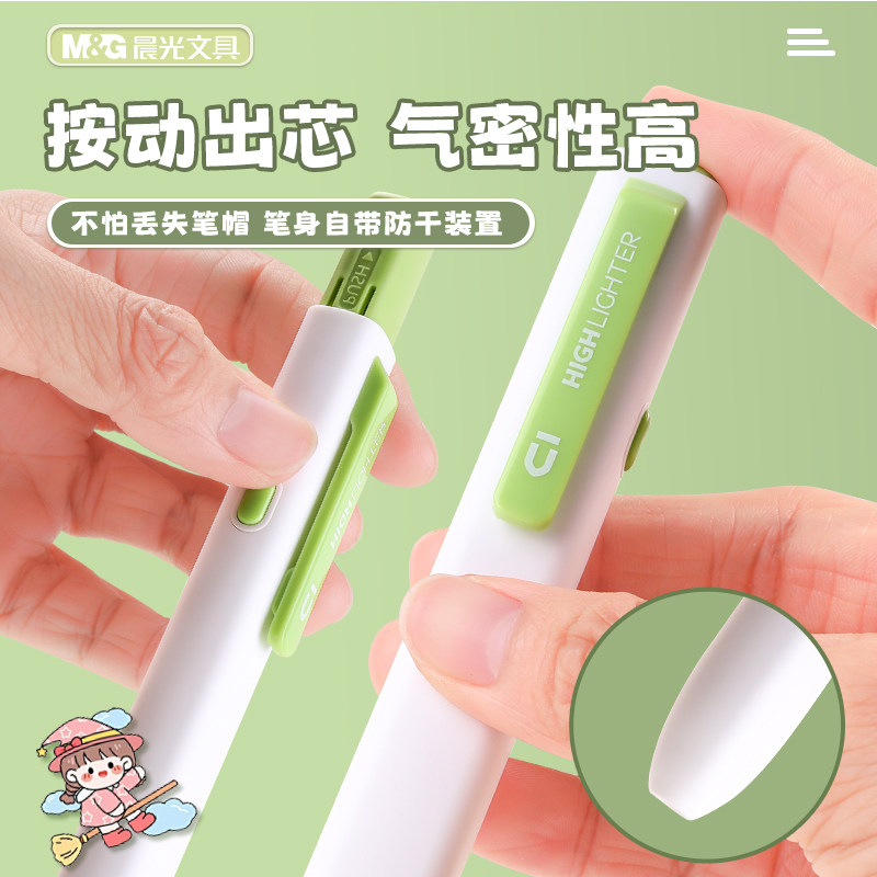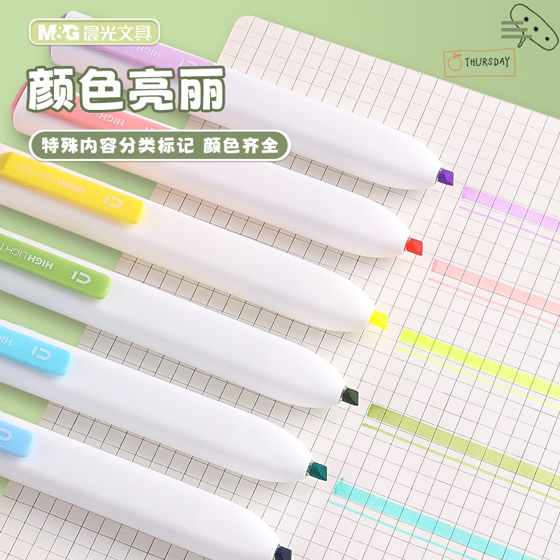 晨光按动小方芯荧光笔学生专用银光标记笔划重点彩色记号笔高颜值轮廓笔手帐手抄报笔小学生标记笔彩色记号笔