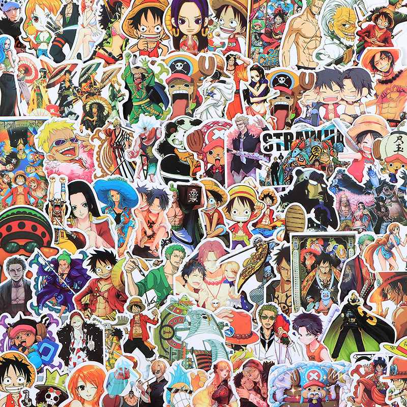 120张可爱卡通海贼王路飞贴纸行李箱贴画保温杯贴防水装饰手账画