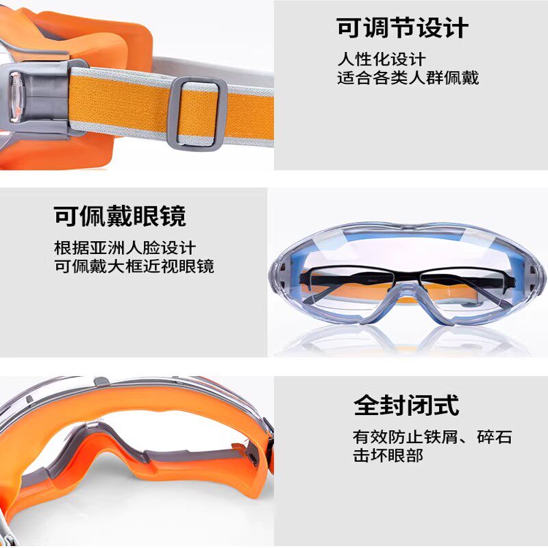 护目镜防尘劳保防飞溅高清骑行防风沙可戴眼镜户外用透明防护眼镜