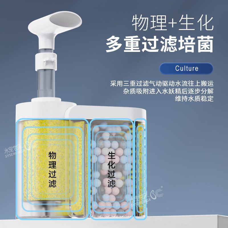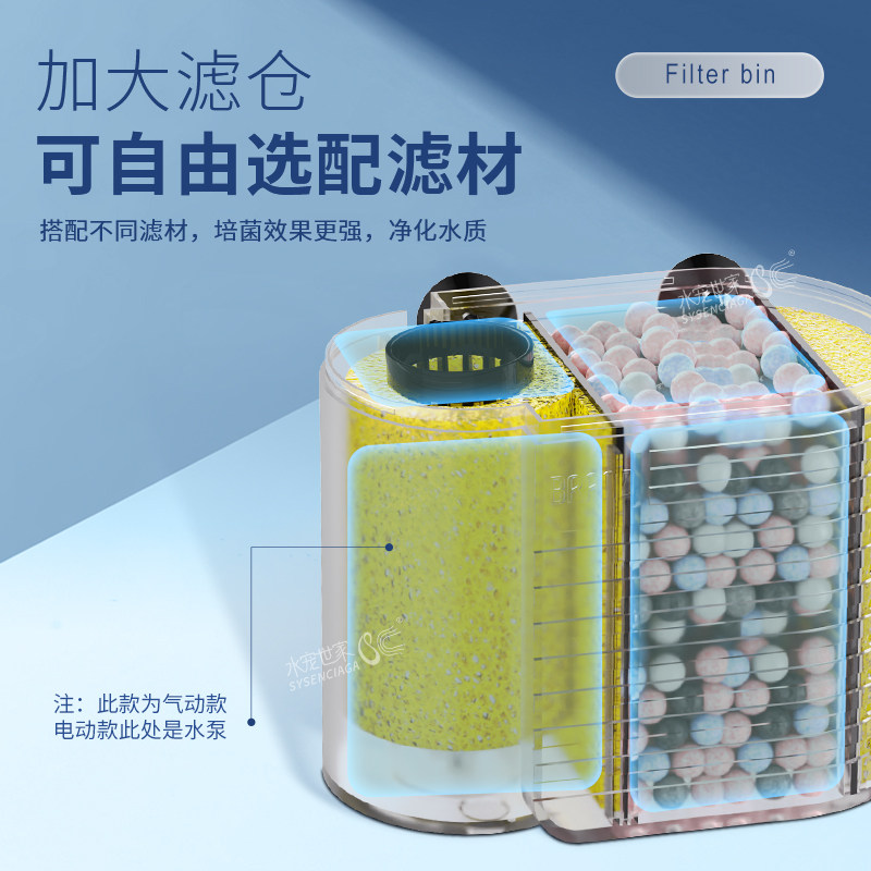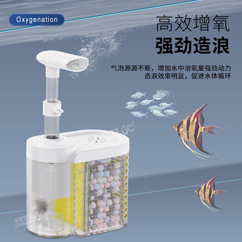 气动水妖精内置过滤五合一增氧水循环静音氧气泵鱼缸电动过滤器