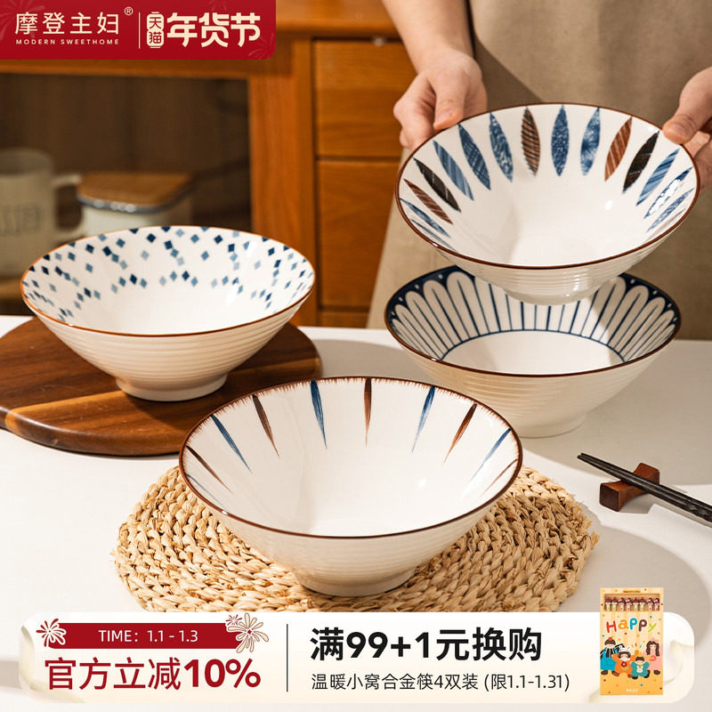 摩登主妇拉面碗家用2025新款高级感汤面碗吃面大碗斗笠面条碗餐具