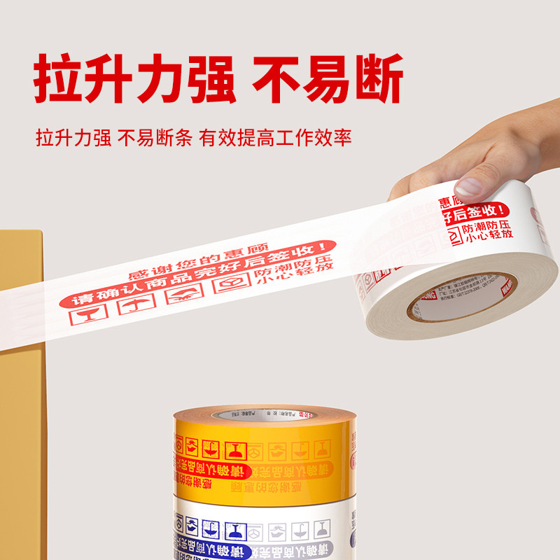 胶带透明淘宝警示语快递打包封口胶布包装大卷米黄色印字胶布胶条厂家特价整箱批加厚宽强力高粘度封箱胶带纸