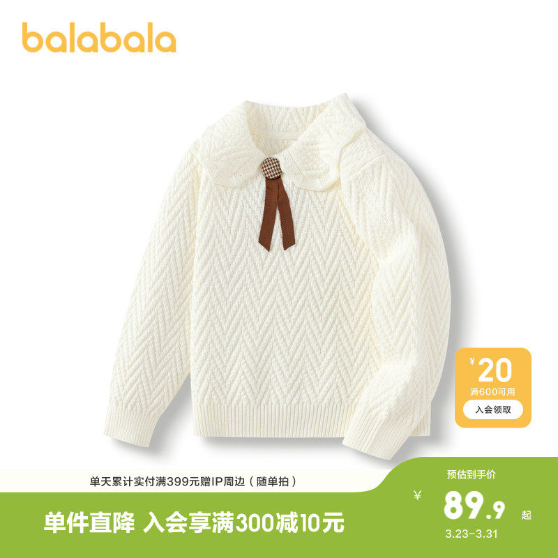 巴拉巴拉童装儿童毛衣女童秋冬学院风针织衫套头毛衫百搭翻领上衣