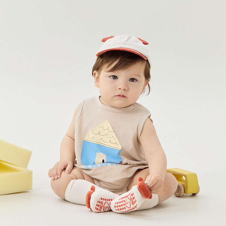 【糯米棉】papa爬爬夏季婴儿包屁衣男女宝纯棉开肩无袖连体衣休闲