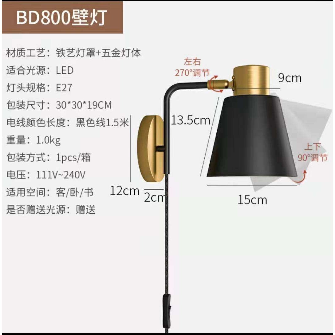 床头壁灯客厅北欧简约卧室个性创意美式免接线床头酒店客房壁灯