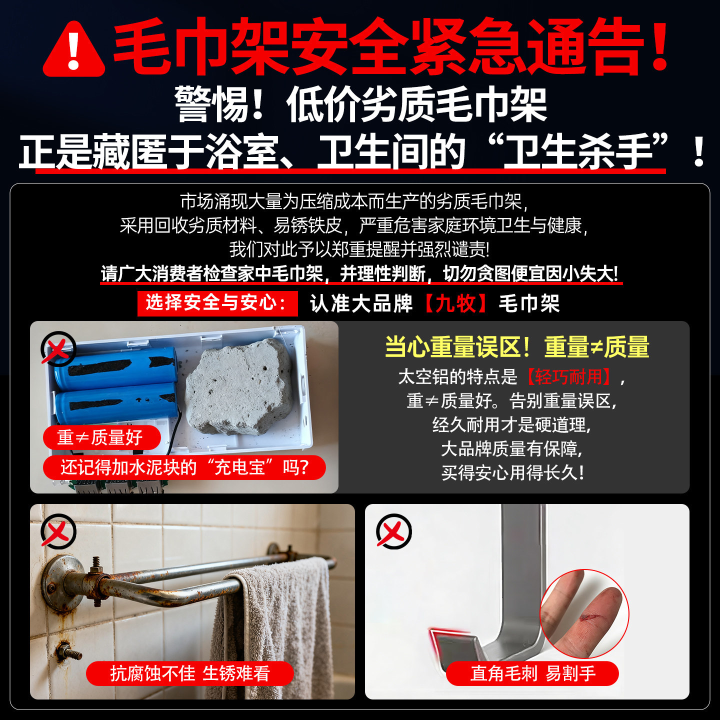 九牧枪灰毛巾架免打孔卫生间浴室置物架厕所浴巾架一体太空铝架子