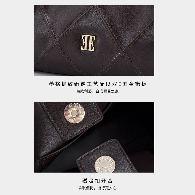 ELLE女包2025新款菱格手提斜挎包女复古潮流轻奢高级感单肩斜挎包