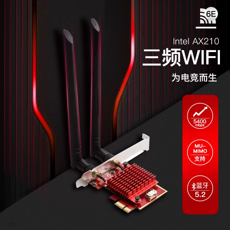 AX210无线网卡WiFi6蓝牙5.3 5.4台式机电脑内置免驱千兆wifi7 BE200无线PCIE百兆5400M 1200M三频网卡