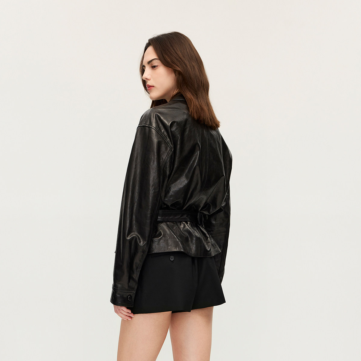 【新品】OCHIRLY欧时力 绵羊皮夹克皮衣真皮外套配腰带复古25秋冬