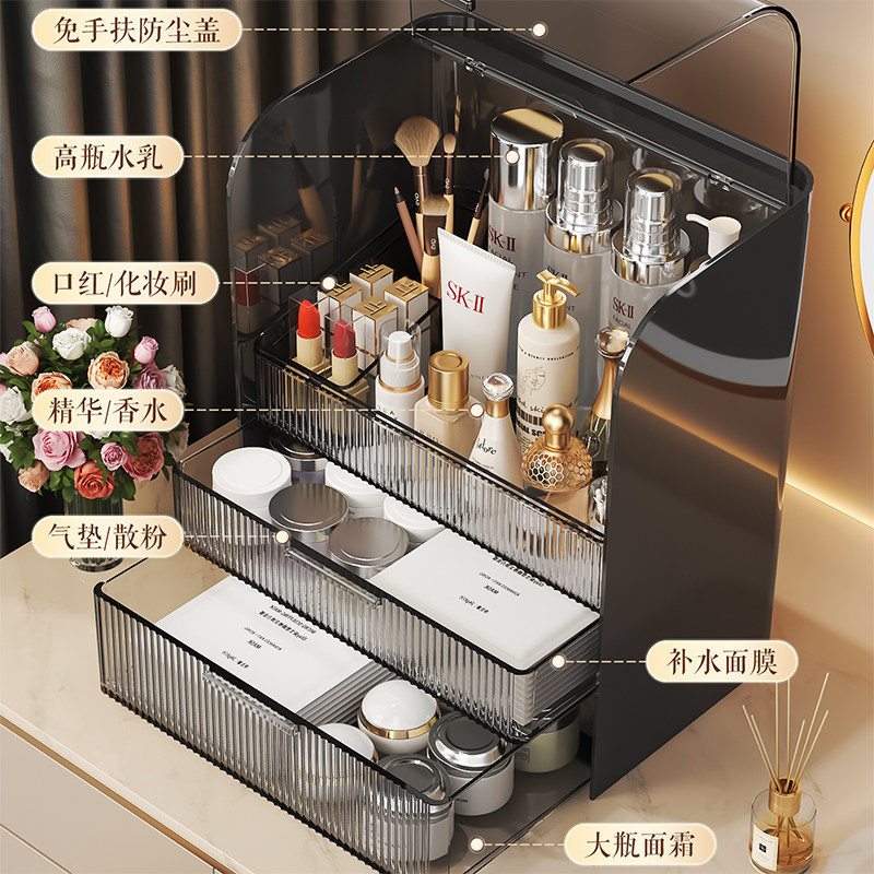 化妆品收纳盒桌面高级感梳妆台护肤品口红置物架防尘亚克力收纳箱