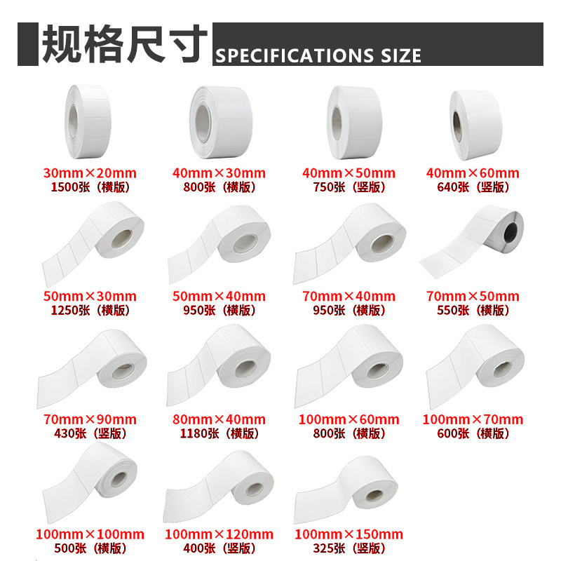 铜版纸不干胶标签 20 30 40 50 60 70 80 90 100 150铜板纸标签碳带条码服饰吊牌直播贴纸彩色手写定制