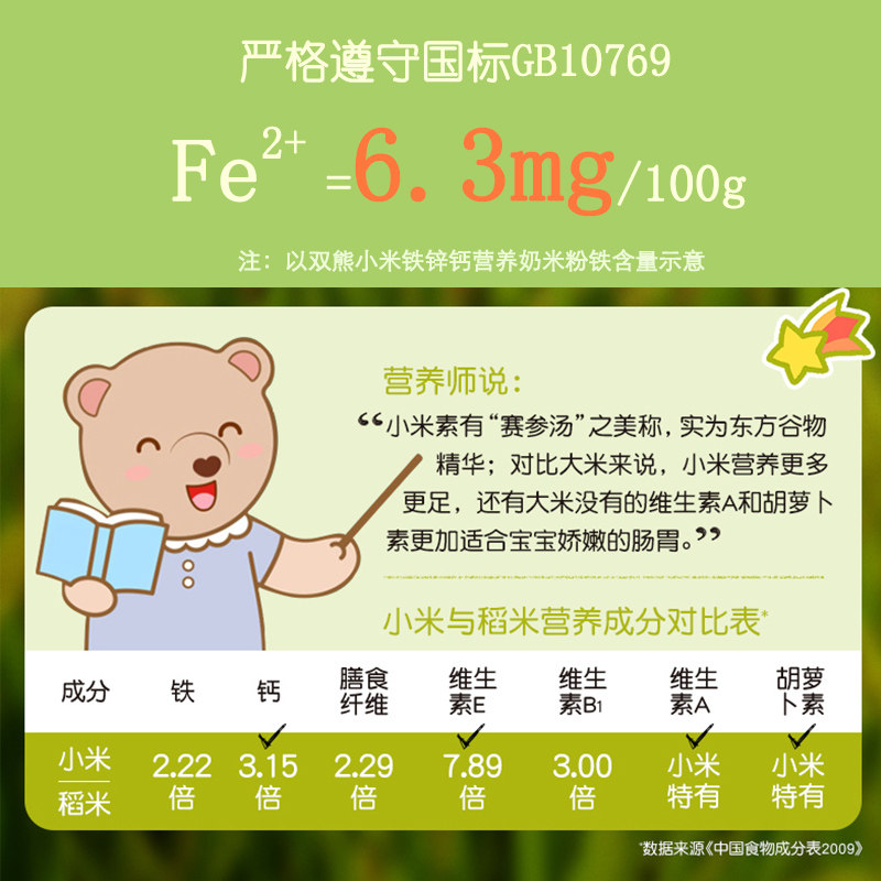 双熊小米米粉 肠道益生菌营养奶米粉0段1段高铁婴儿米糊宝宝辅食