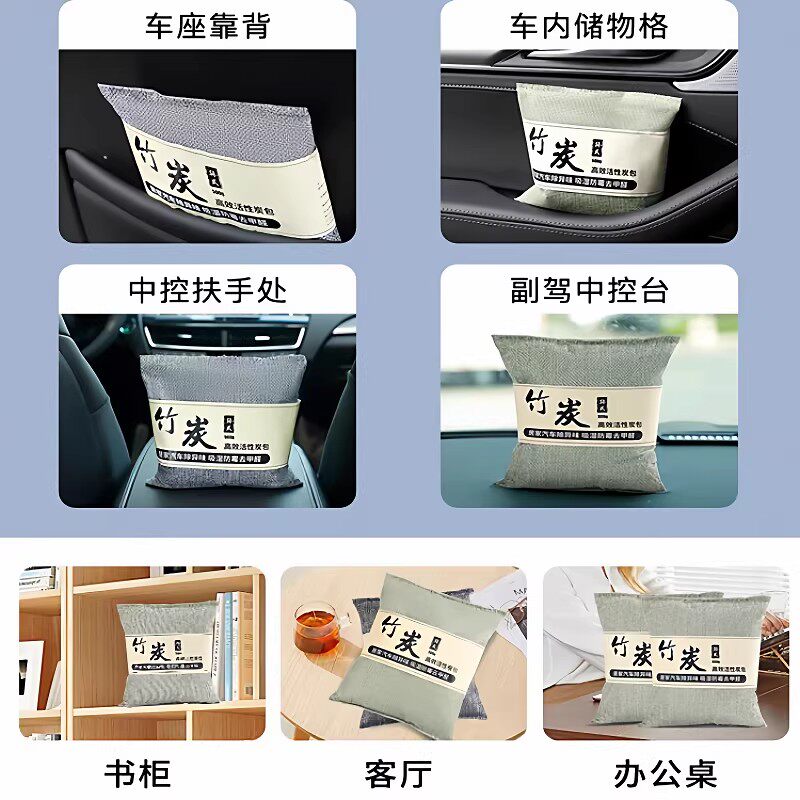 汽车竹炭包麻布家用吸湿新房除异味除甲醛活性炭包防霉衣柜车内