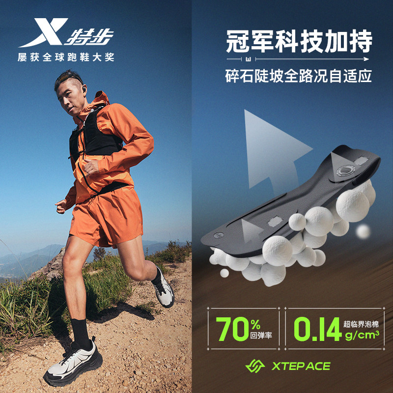 王鹤棣同款|特步追山PRO登山鞋男户外徒步鞋防泼水抓地越野跑步鞋