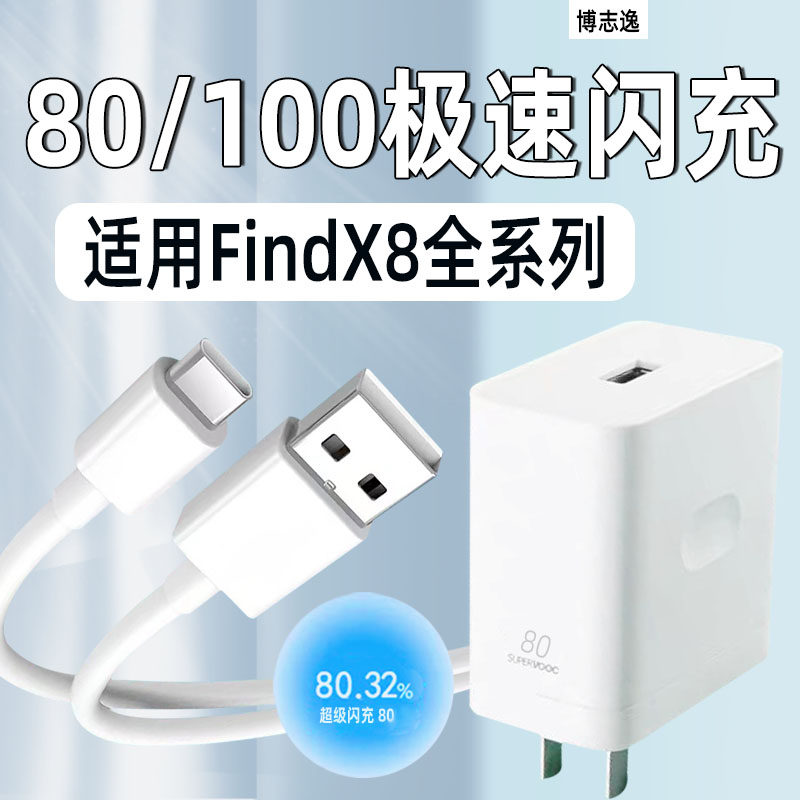 博志逸适用OPPOFindX8Ultra充电器100快充FindX8/9Pro手机充电头80闪充FindX8/8s/8s+插头套装加长冲电器
