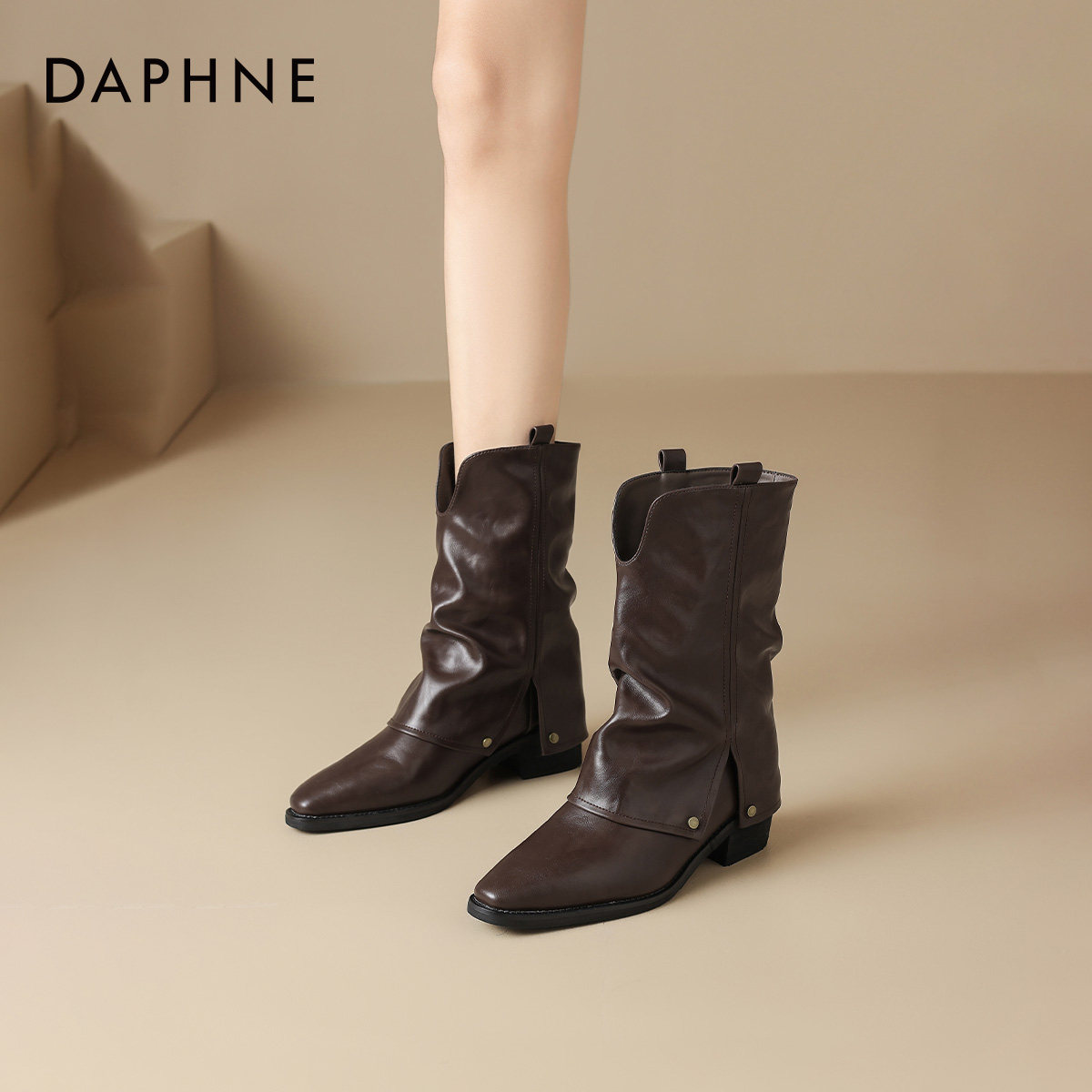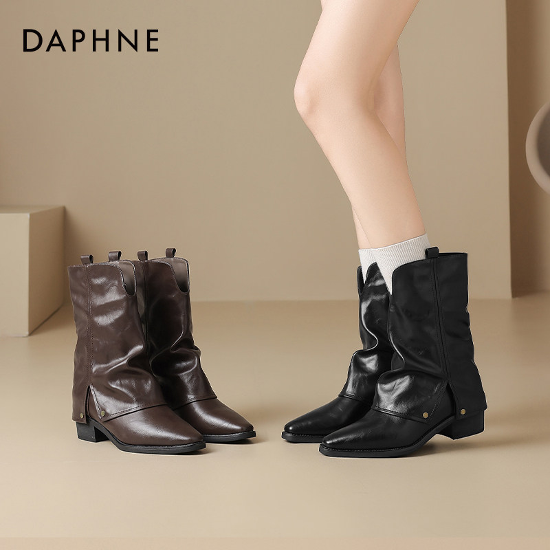 达芙妮短靴女2025新款中筒马丁靴尖头堆堆裤管靴秋冬英伦骑士靴子
