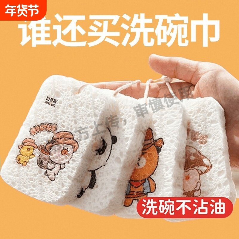 木浆棉海绵擦洗碗布压缩百洁布海绵抹布不沾油厨房专用锅刷魔力擦