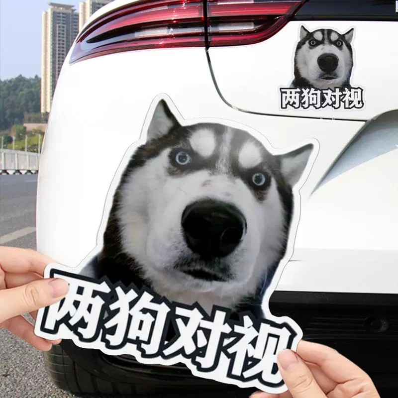 哈士奇表情包两狗对视车贴搞笑有趣汽车装饰贴纸个性创意防水贴画