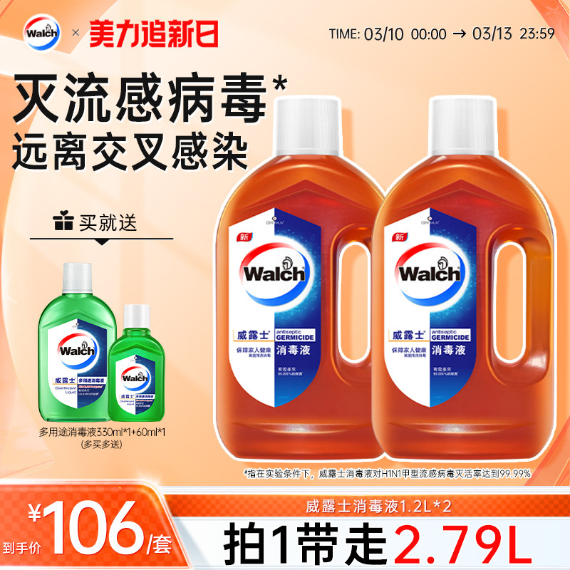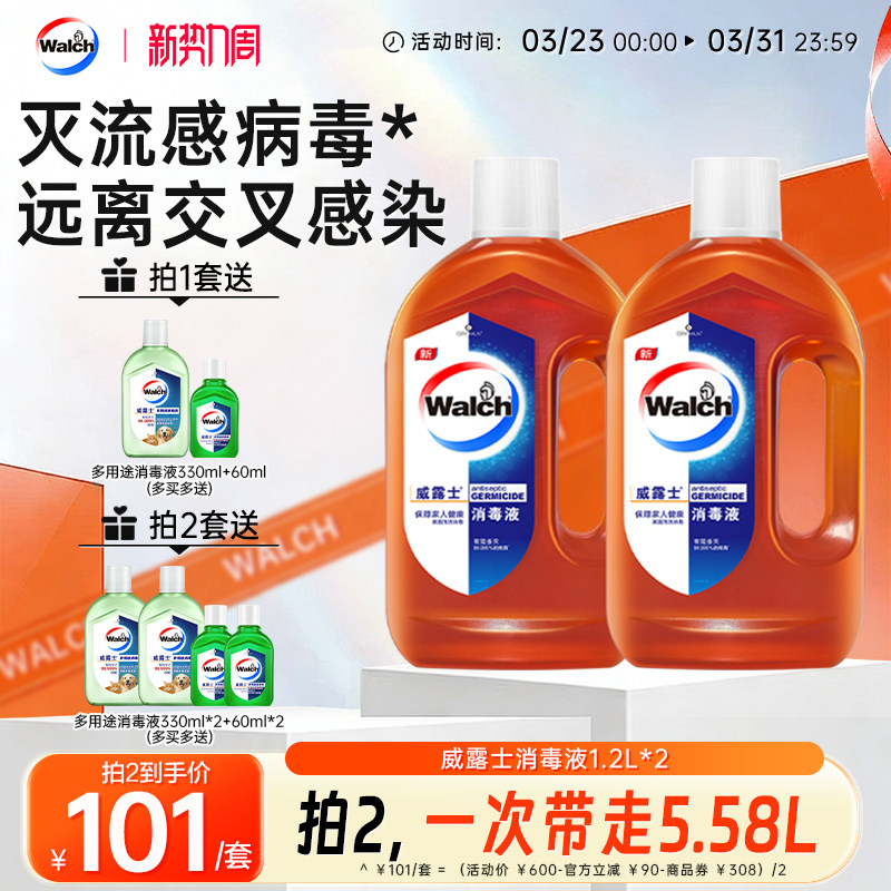 【推荐2套】威露士消毒液1.2L*2家用杀菌室内洗衣玩具家具消毒水
